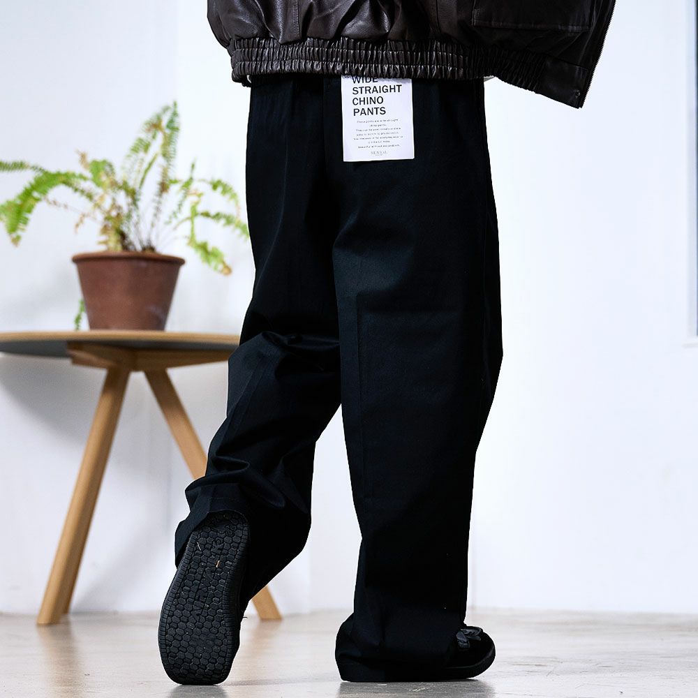 トレンドのワイドシルエットで、カジュアルにもきれいめにも着こなせるチノパンツ。