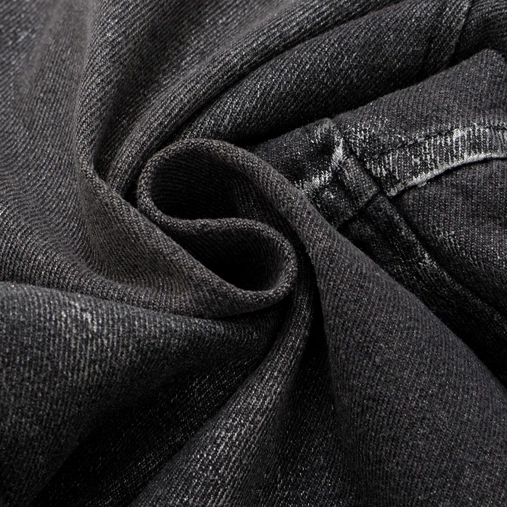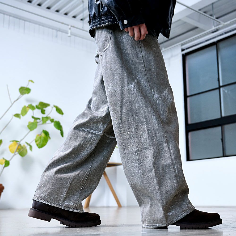全体に施された銀箔加工がアクセントになった、存在感抜群のワイドデニムパンツ。