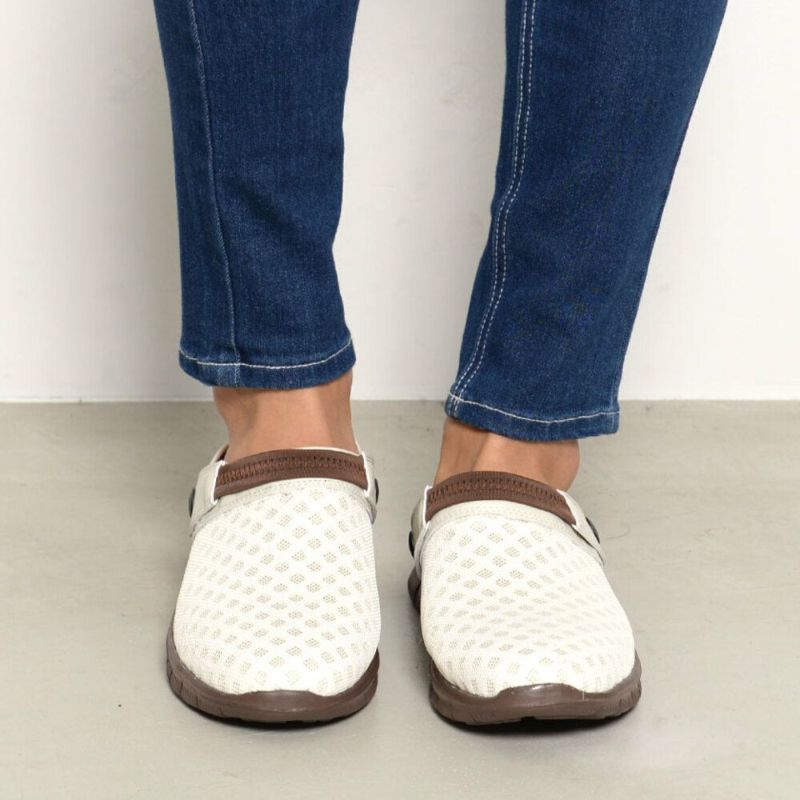 通気性の良いメッシュ素材を採用し、ストラップ部分は調節可能で足にしっかりフィット。