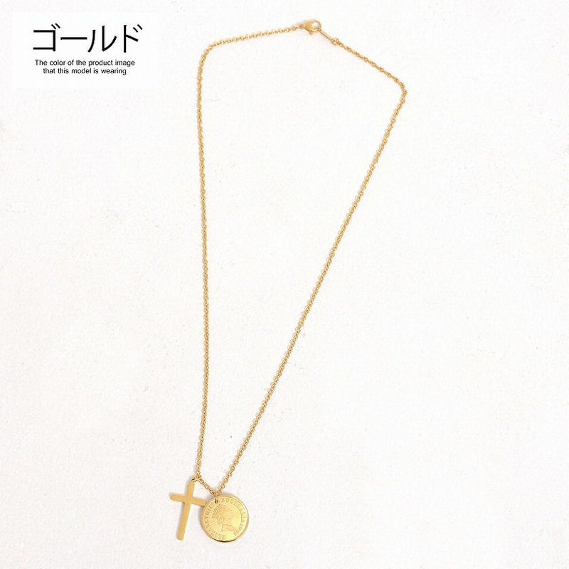 シーンに合わせて選べる、洗練されたネックレス。自分らしさを表現する必須アイテム。 Brodiaea by goldblood(ブローディアバイゴールドブラッド)コイン×クロススチールネックレス/全1色