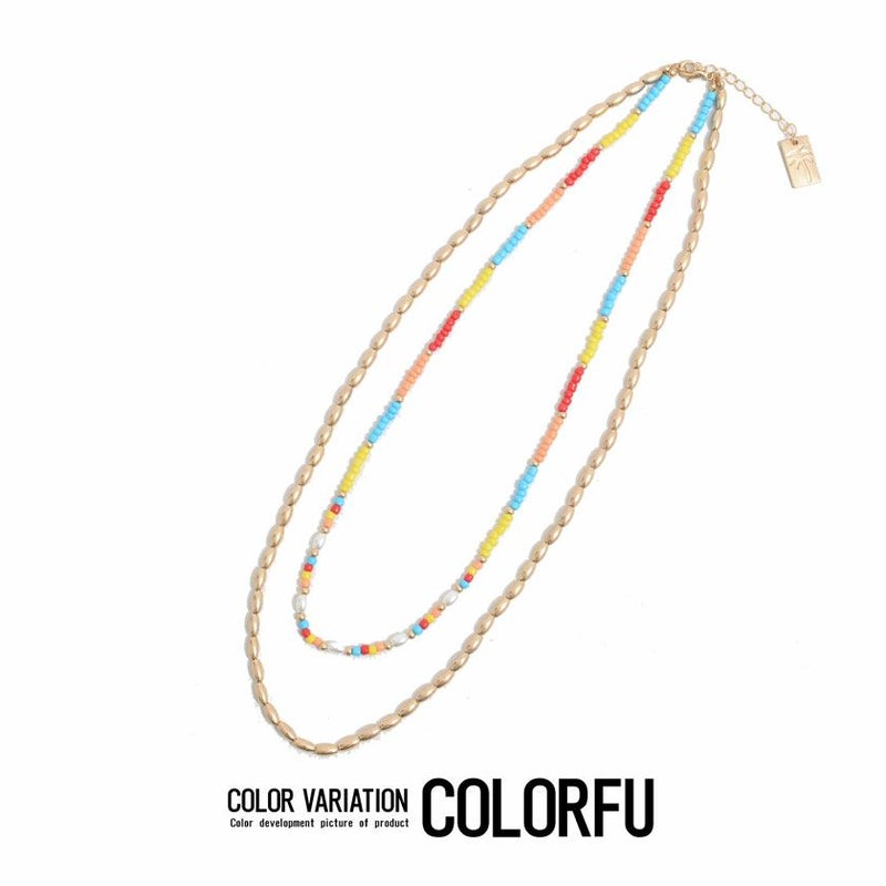 BITTER STORE(ビターストア)にKahiko【カヒコ】アラフルアニネックレスが入荷しました。 プラパールとカラフルなビーズ、メタルの異素材を組み合わせた、遊び心たっぷりな2連ネックレス。 パームツリーのモチーフがHAWAIIを感じさせます。シンプルコーデやビーチスタイルのアクセントに◎ HAWAIIでパームツリーは「家族愛」「守護」の意味があり、幸せをもたらすといわれています。 ※モデル画像は照明などの影響により実際の商品と異なる場合がございます。