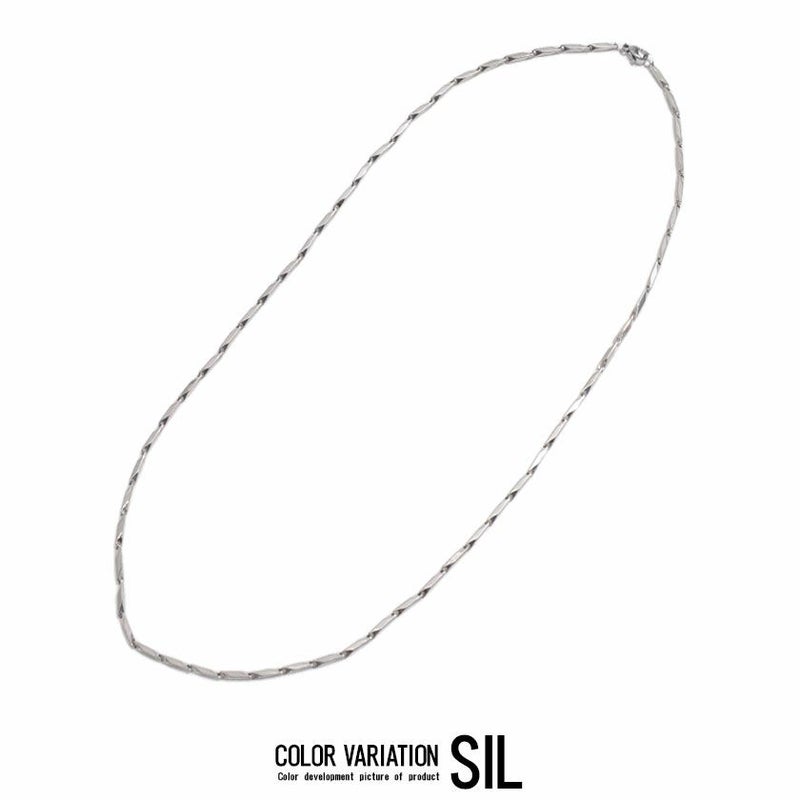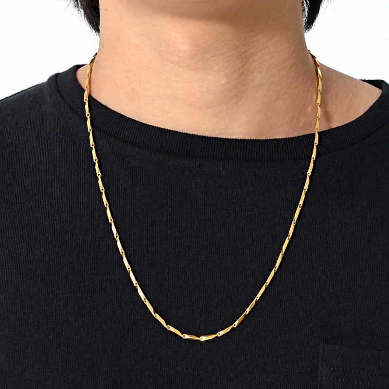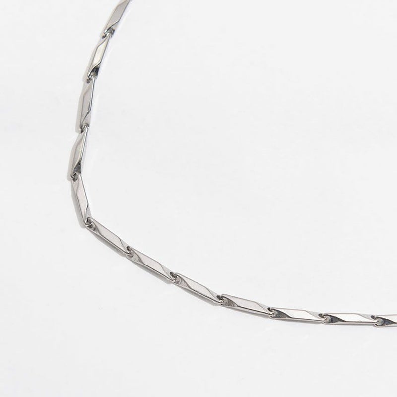 縦長のパーツにカットを施したチェーンデザインのネックレス。