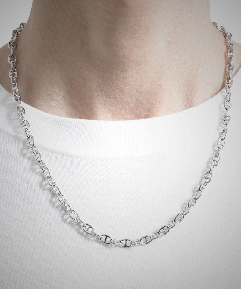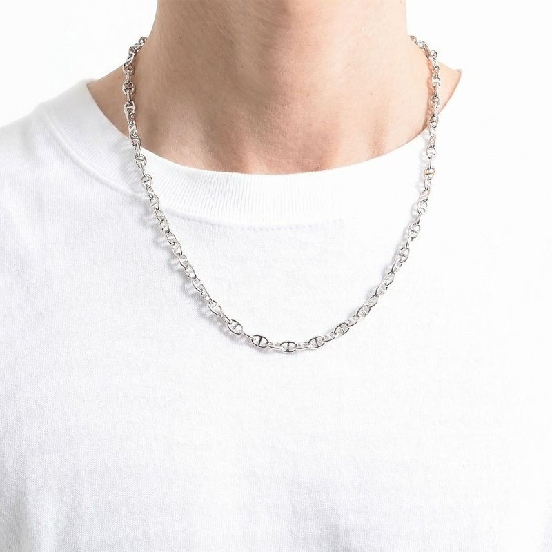 シンプルながらも存在感のあるデザインのチェーンネックレス。