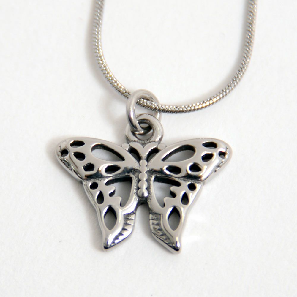 ファインスチールを使用したバタフライモチーフのネックレス。