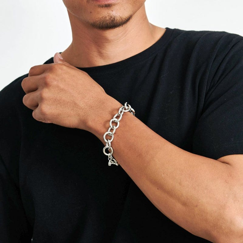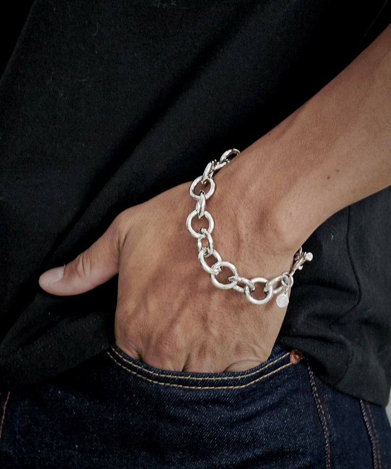 Tバー仕様の接続部分によってスムーズな着脱を可能にし、上質な使い心地のチェーンブレスレット。