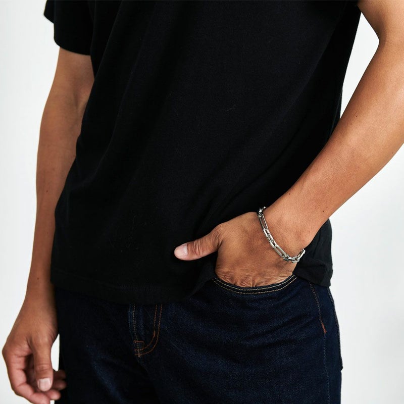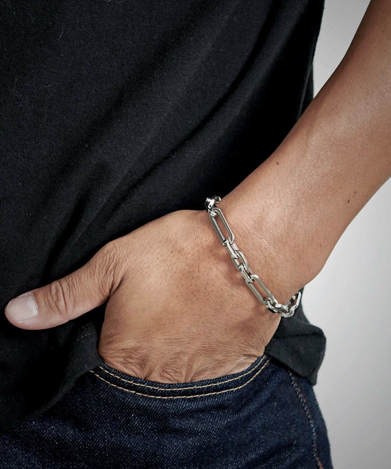1本で着けても重量感があり、他ブレスレットと重ね着けをしてもサマになります。