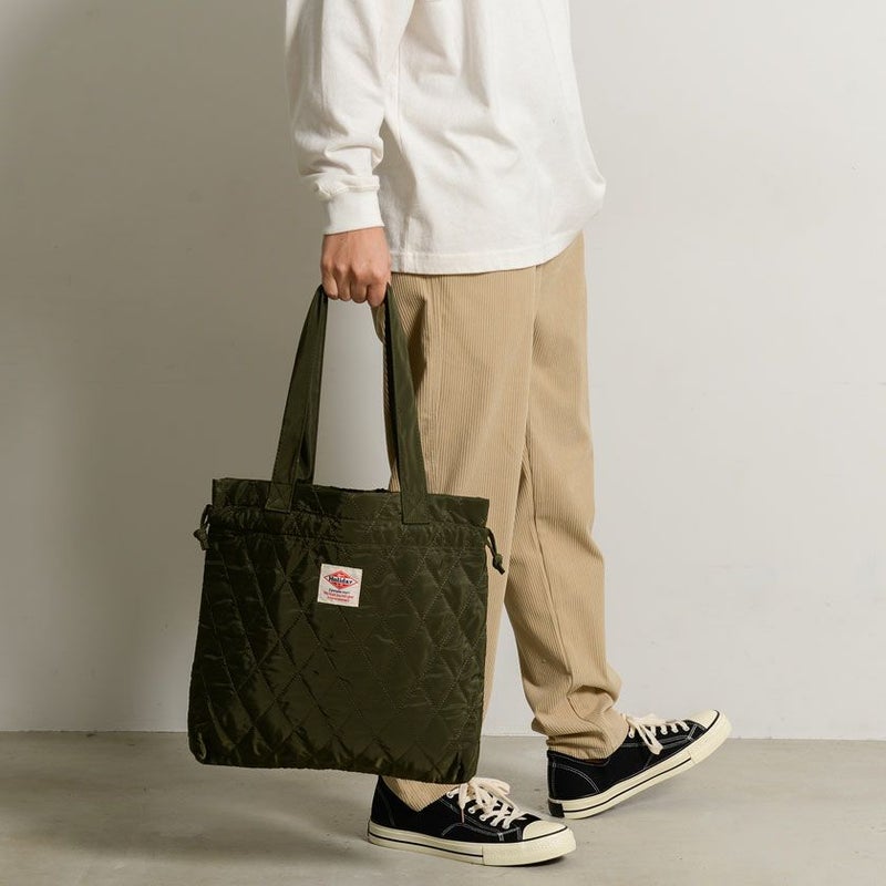 大容量で使いやすいトートバッグ。シンプルながらおしゃれで、どんなコーデにも合う。 Bitter select(ビターセレクト)キルティング巾着バッグ/全3色