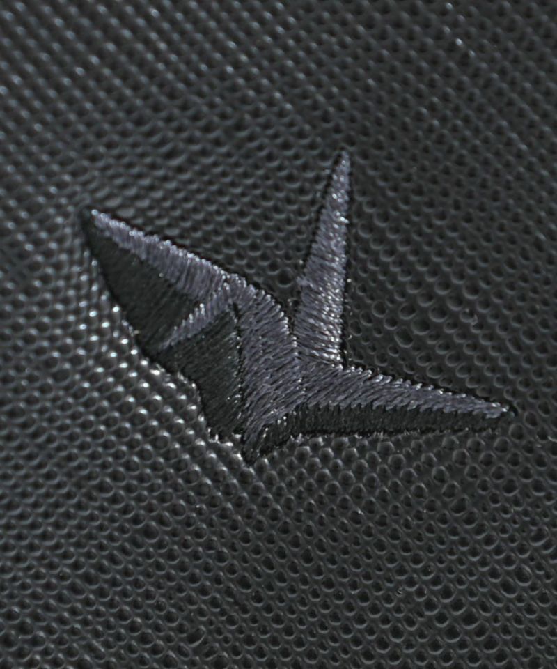 フロントにはブランドロゴのエンボス加工、さりげなく配されたアイコン刺繍が高級感を演出。