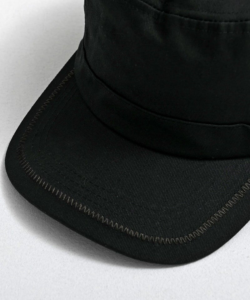 全体はミニマルにまとめつつ、つば部分のステッチ刺繍と本体サイドの刺繍ロゴが程よいアクセントに。