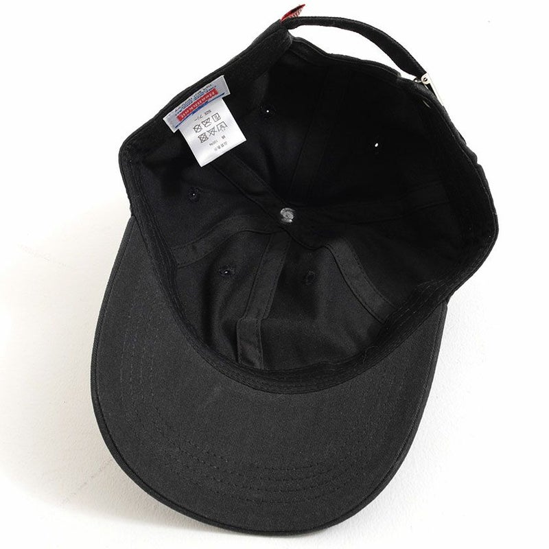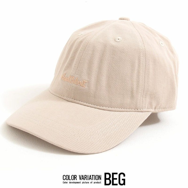 筆記体のロゴ刺繍がシンプルで、使い勝手の良いツイルキャップ。