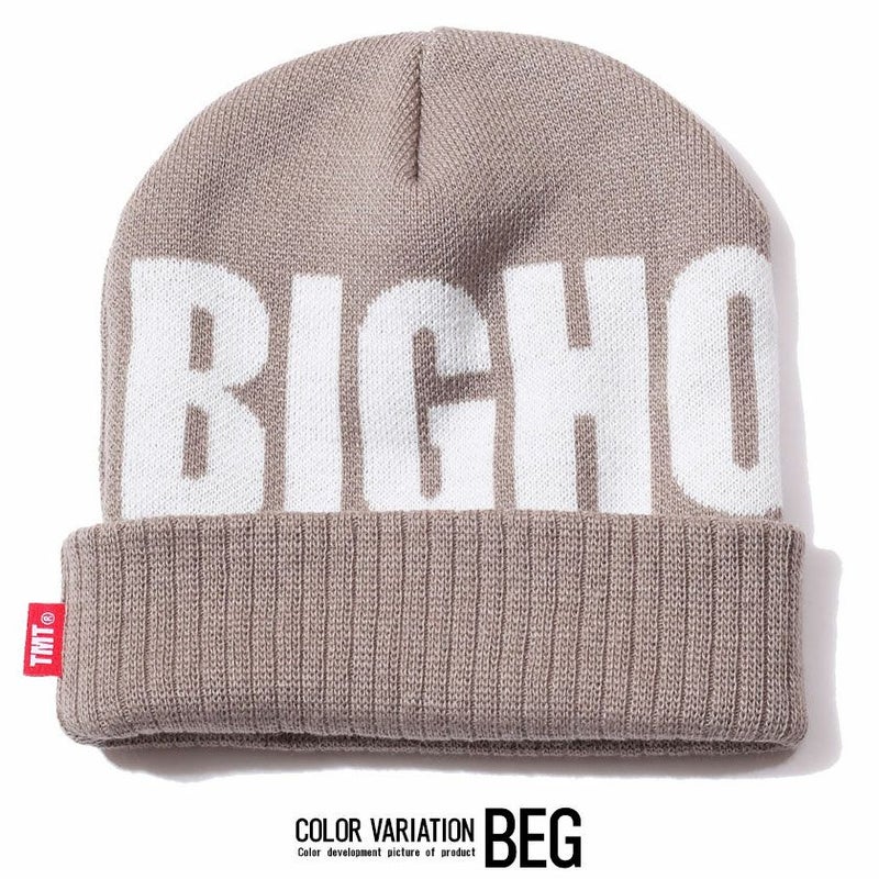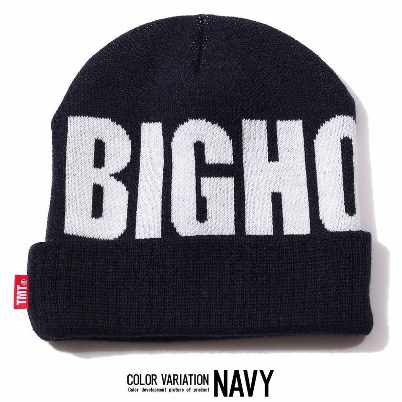 『BIGHOLIDAY』の文字が全面に入ったインパクトのあるニットキャップ。