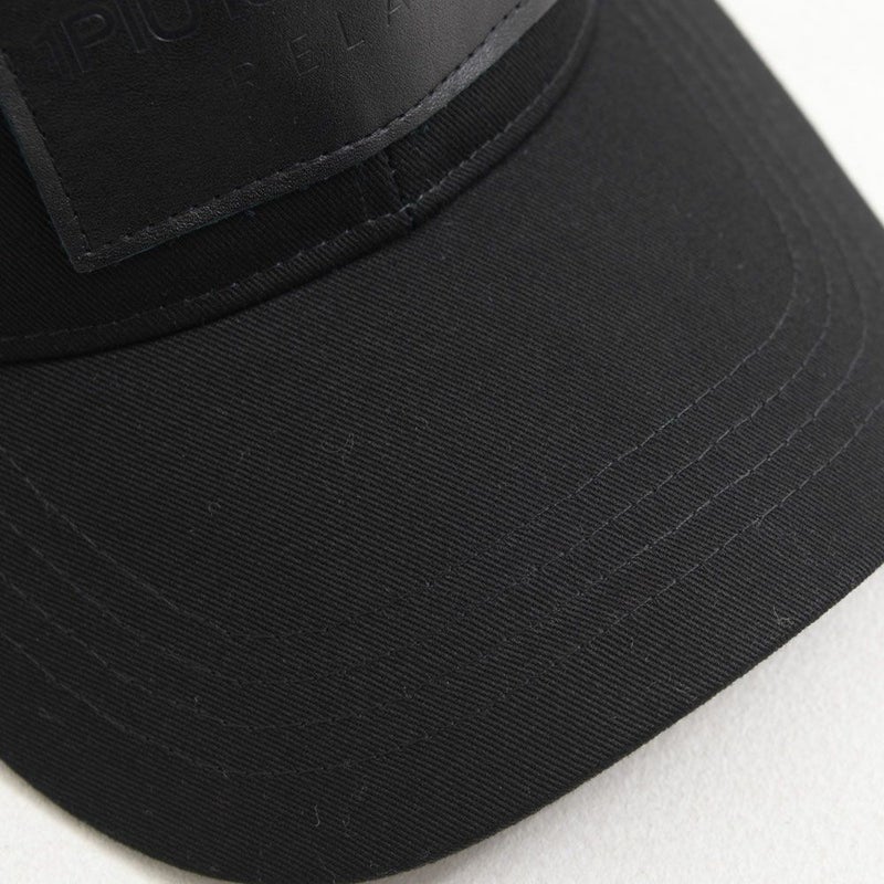 フロントにはフェイクレザーを使用した大きめのオリジナルパッチを配置し、ブランドロゴを箔押しで表現。
