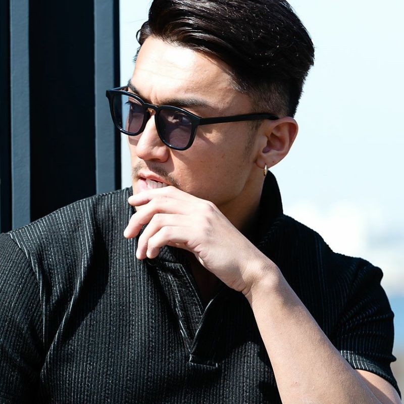 ウェリントン型はサングラスの中でも定番の形なのでサングラス初心者さんでも挑戦しやすいのが特徴。