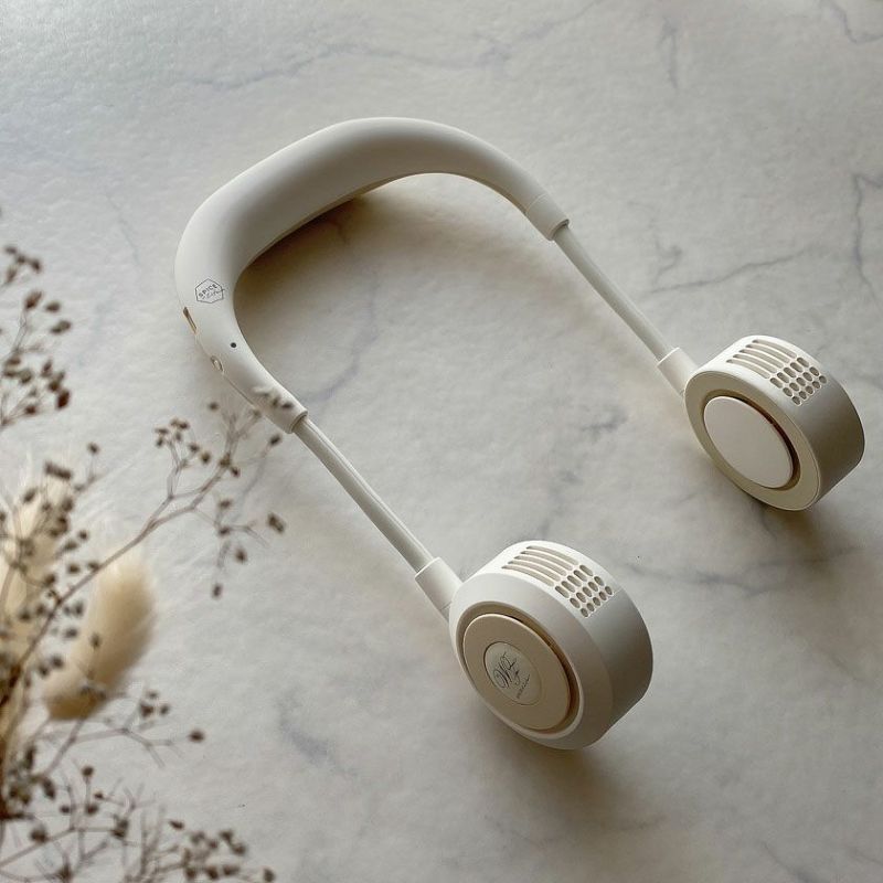 ■暑い時、暑い場所でいつでもどこでも、首にかけるだけの2021年モデル新形状の携帯用扇風機です。