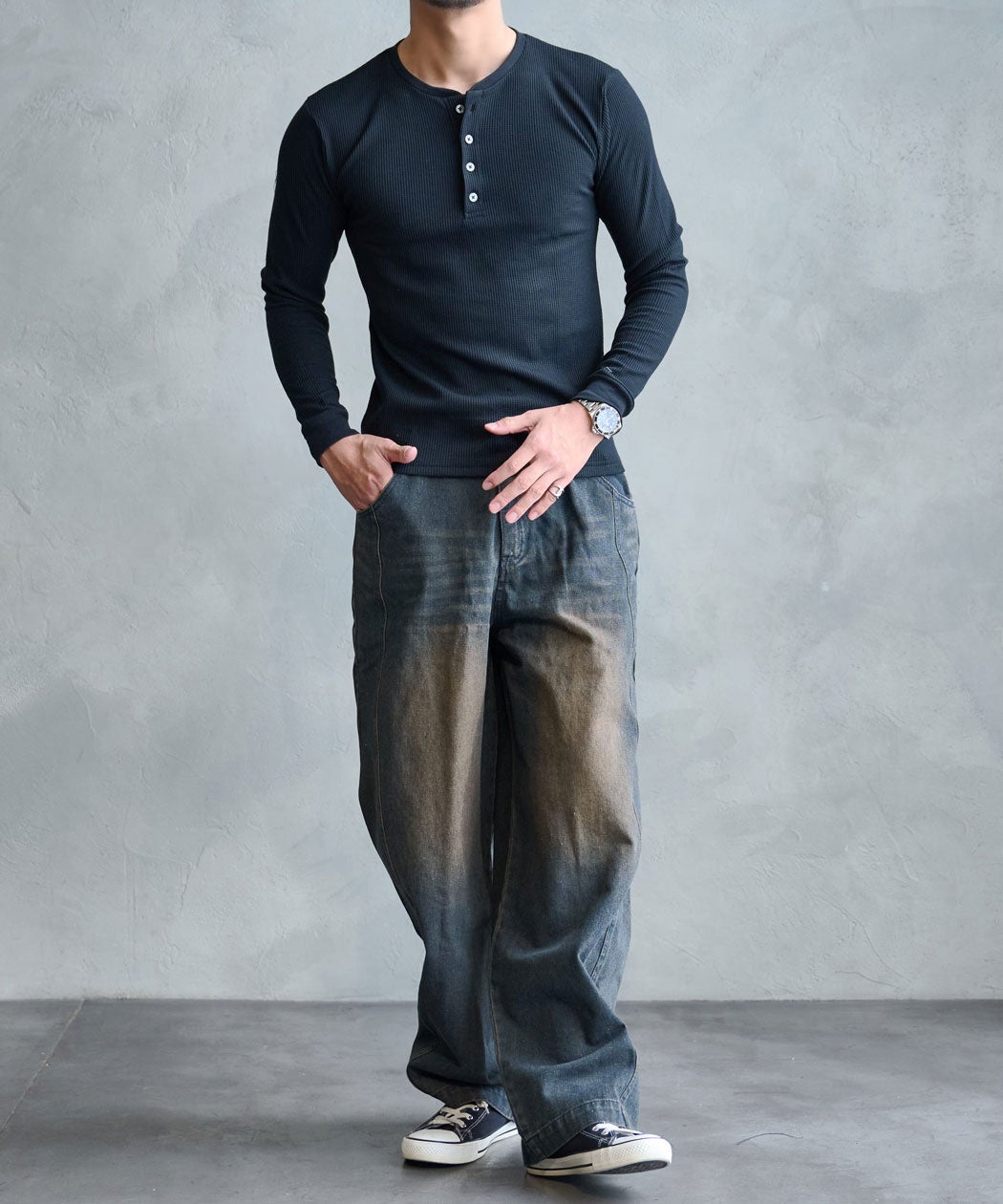 他の画像を見る 凹凸のあるワッフル編みが特徴で無地でも奥行きのある表情を演出してくれます。首元はヘンリーネック仕様。3つボタンデザインが程よいアクセントになり、ボタンの開閉で印象を調整可能。 Bitter select(ビターセレクト)ワンポイント刺繍ワッフルヘンリーロンT/全2色 販売価格 ¥ 5,390 税込 カートに入れる お気に入りに登録する