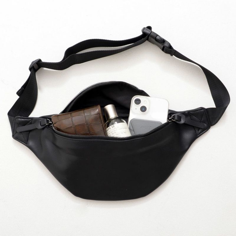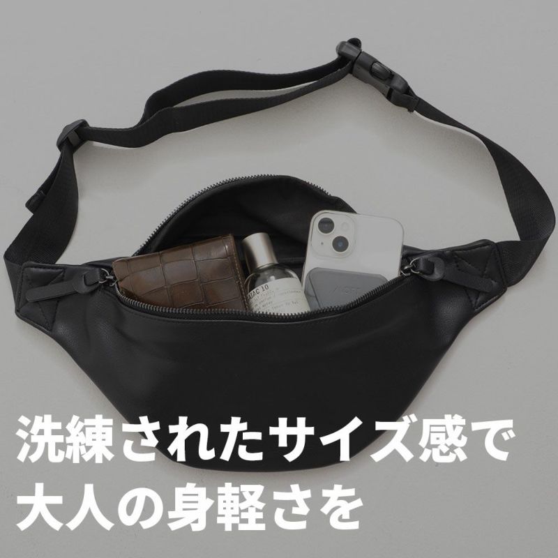 上質な合成皮革を使用した、コンパクトサイズのボディバッグ。