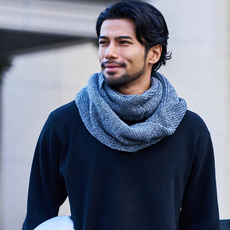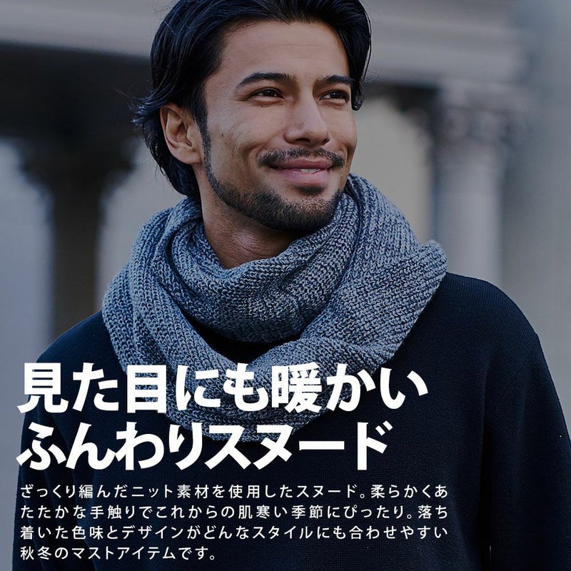 ざっくりと編まれたニット素材を使用したスヌード。