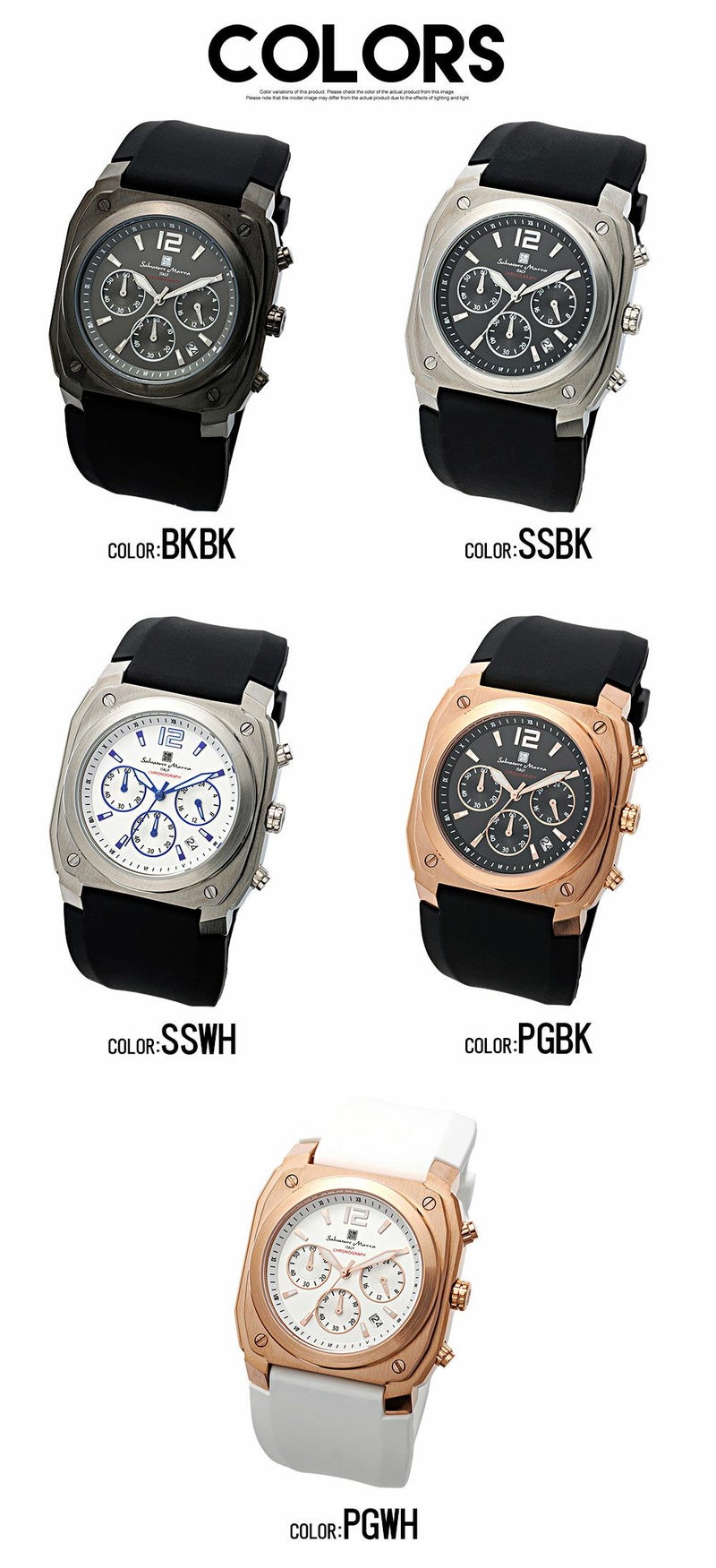 ブラック×ブラック/シルバー×ブラック/シルバー×ホワイト/ピンクゴールド×ブラック/ピンクゴールド×ホワイト