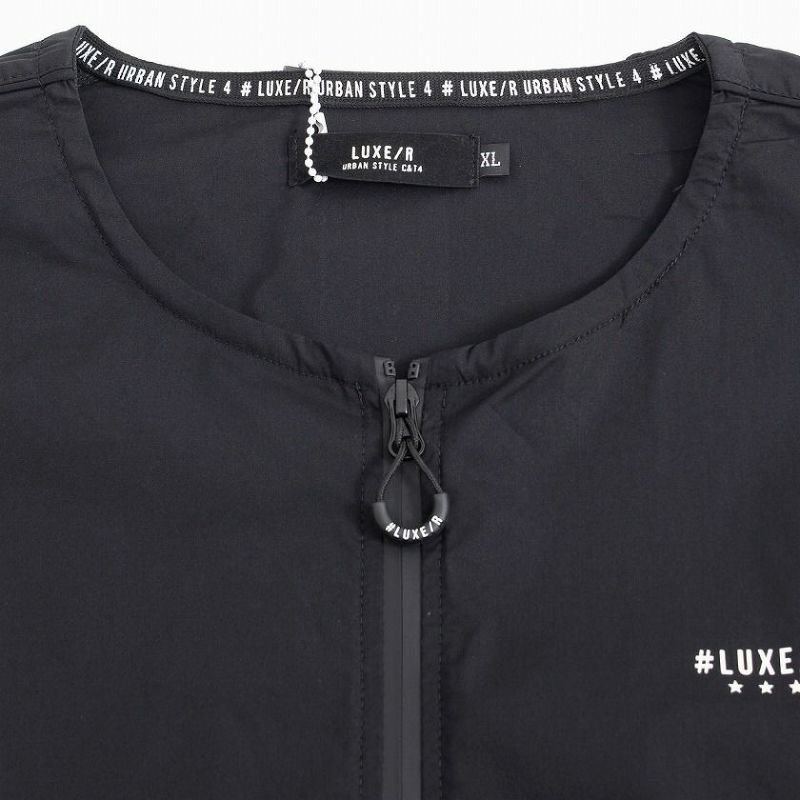 スポーティーでおしゃれなブルゾン。どんなコーデにも合わせやすく、動きやすさも抜群。 LUXE/R(ラグジュ)ノーカラー布帛長袖ジャケット/全4色