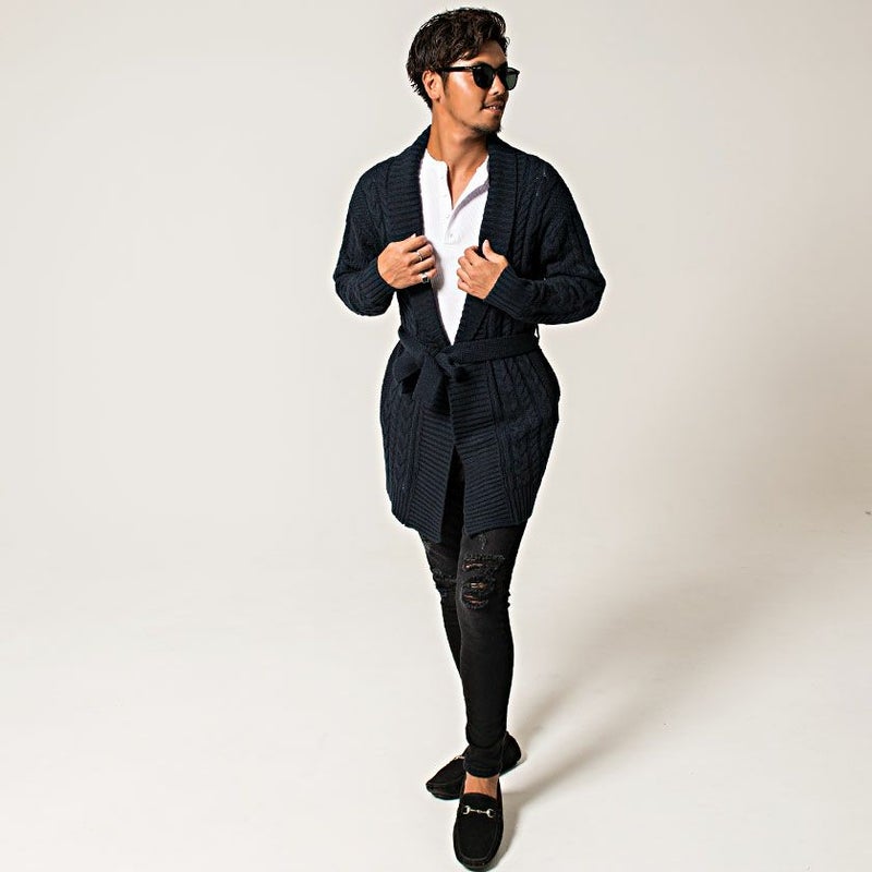 ビターなカジュアルスタイルにぴったりなカーディガン。季節の変わり目に大活躍! CavariA(キャバリア)セミロングショールカラーガウン/全5色