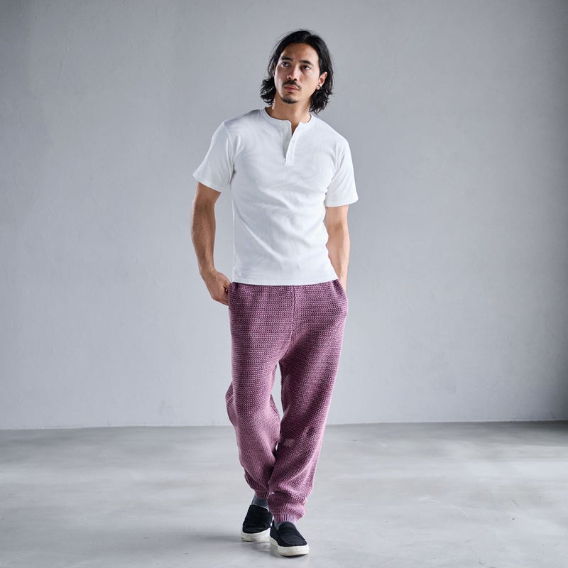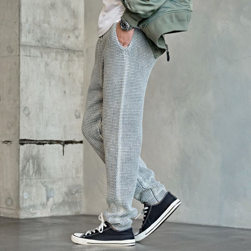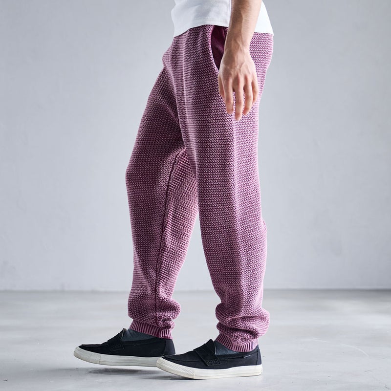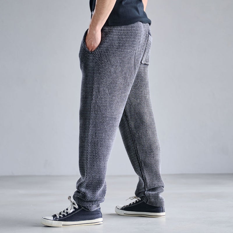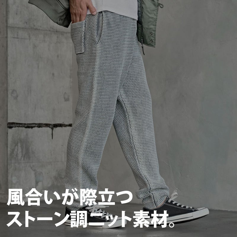 ストーンウォッシュ加工による独特の風合いが魅力のニットロングパンツです。