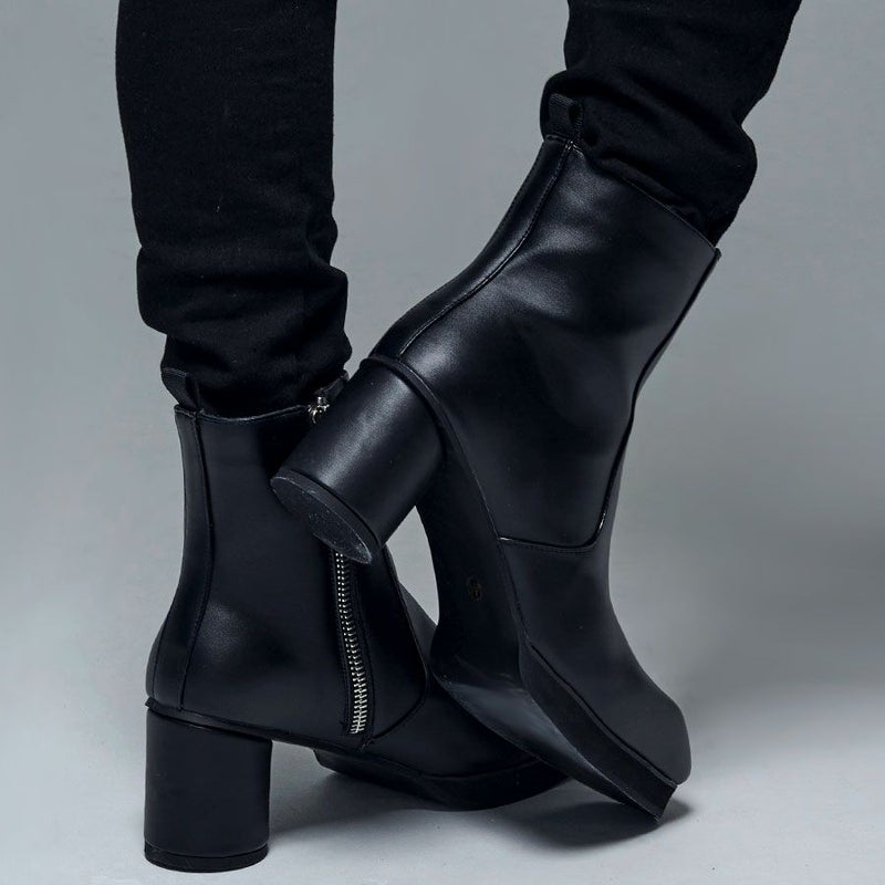 履くだけで脚長効果を発揮する約8cmの高め円柱ヒールで足元に存在感を持ったヒールブーツ。