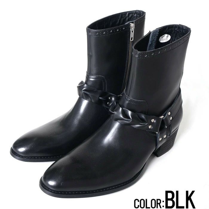 高めのヒールを設定し、スタイルを際立たせる脚長効果、さらに今回スムースレザータイプ・スエードタイプとそれぞれブラック単色の本革アッパーにサイドジップ、リングに採用されたシルバーパーツが映える一足になっています。
