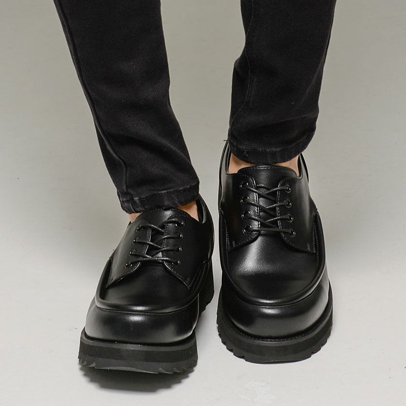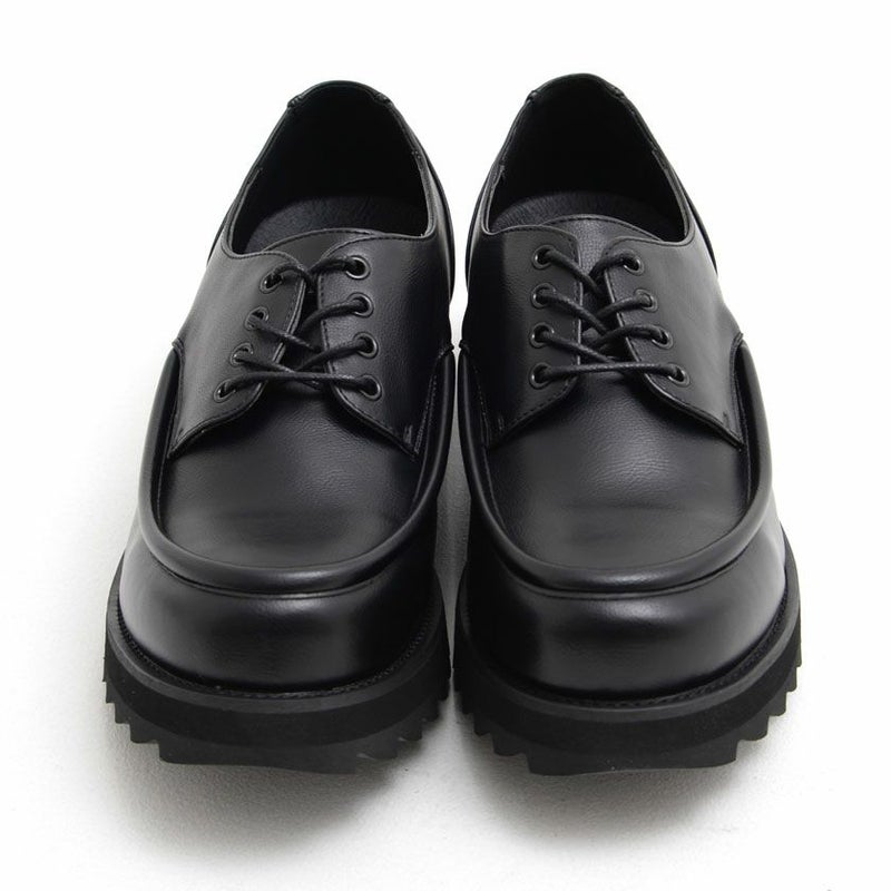 約4cmの厚底シャークソールで、足元に抜群の存在感を持ったコーデを楽しめるダービーシューズ。