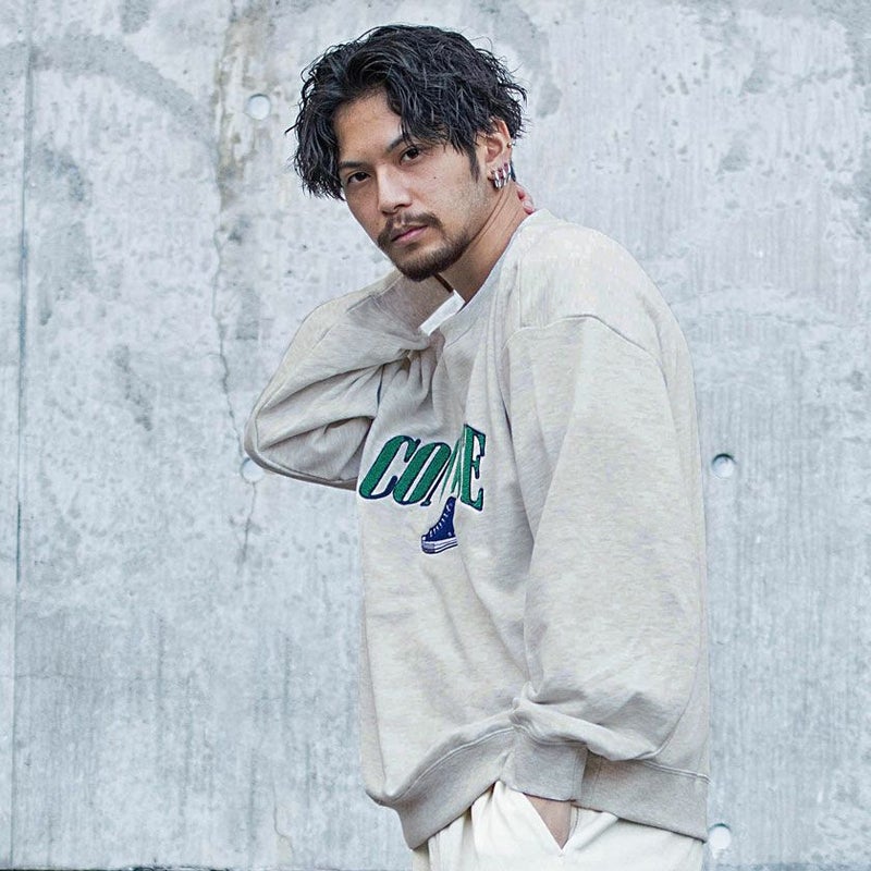 リラックスしたい日にぴったりのトレーナー・スウェット。心地よさとスタイルを両立。 【SALE/セール】CONVERSE(コンバース)BIG裏毛BACKサガラシューズクルーネック長袖トレーナー/全2色