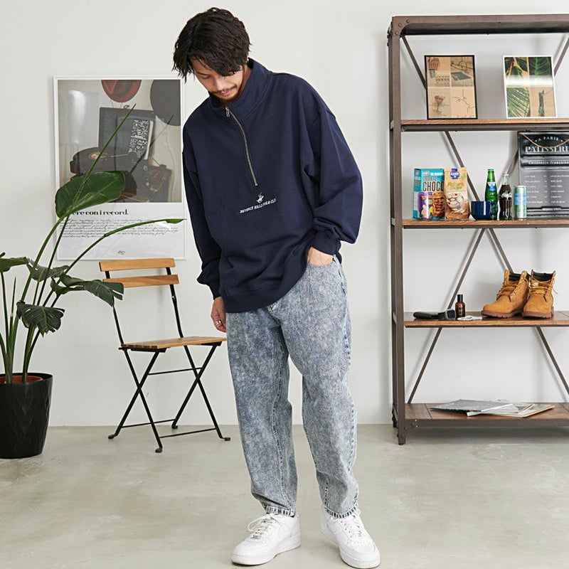 ボトムは、デニムパンツ(ジーンズ)やスキニーパンツなど細身のパンツや、ワイドペインターやカーゴなど太めなボトムもおすすめですよ。