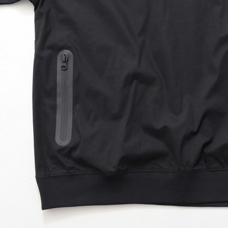 両サイドのポケットのジップにテープ部分に特殊なフィルムがラミネートされた防水仕様の止水ファスナーを採用。