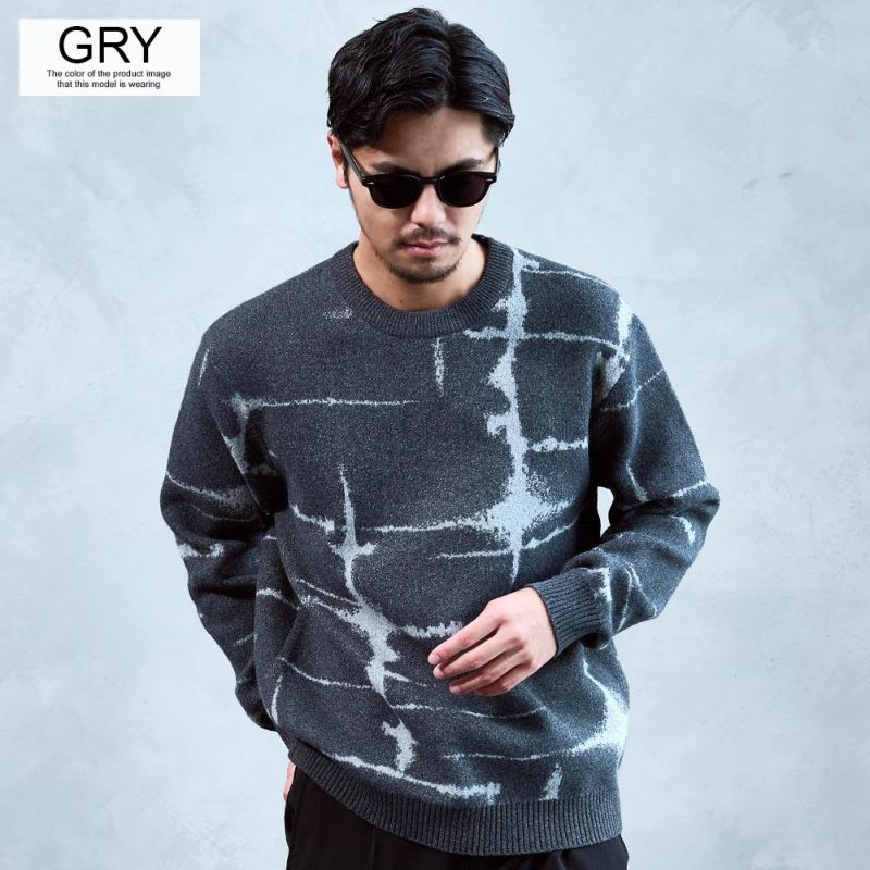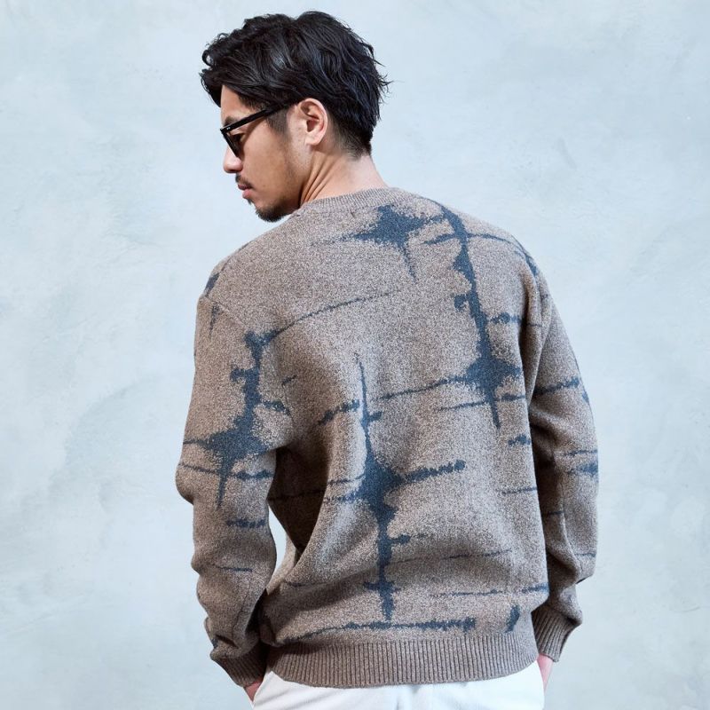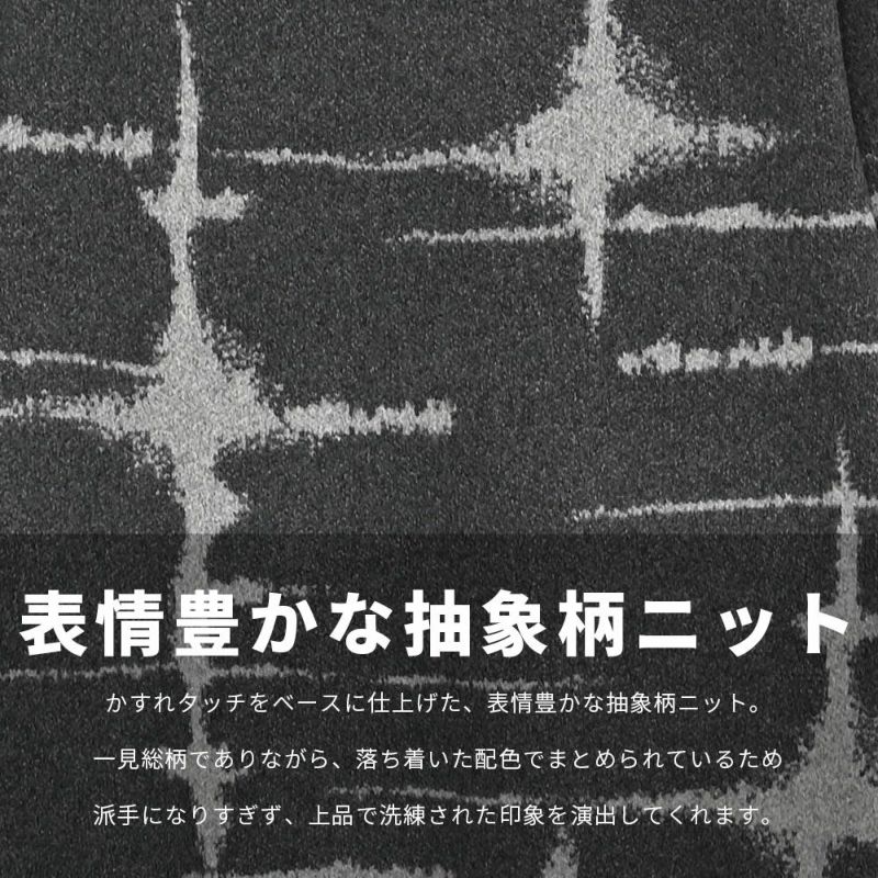 アート作品のようなかすれタッチをベースに仕上げた、表情豊かな抽象柄ニット。