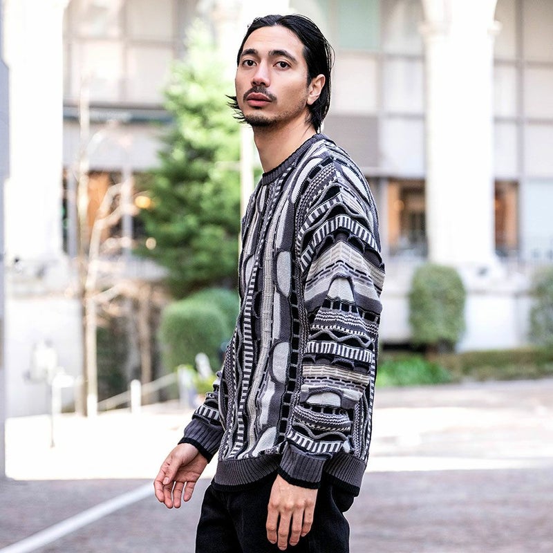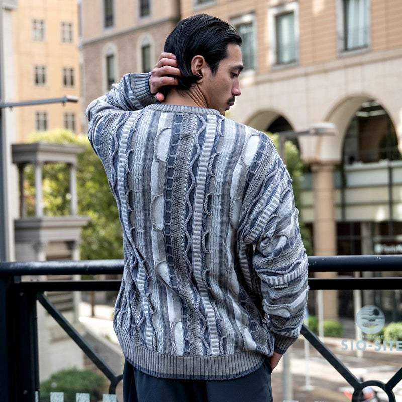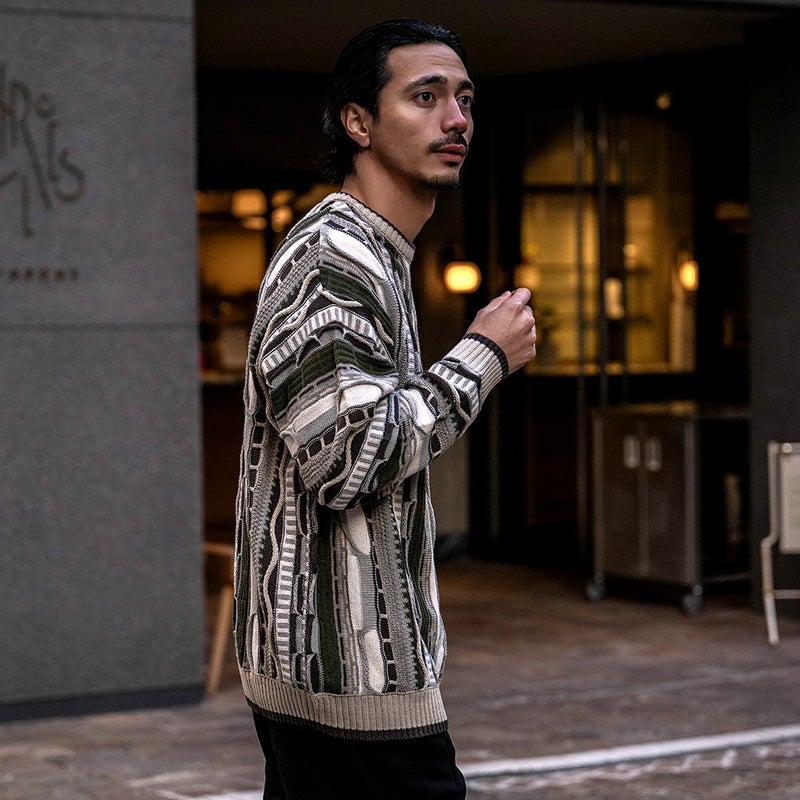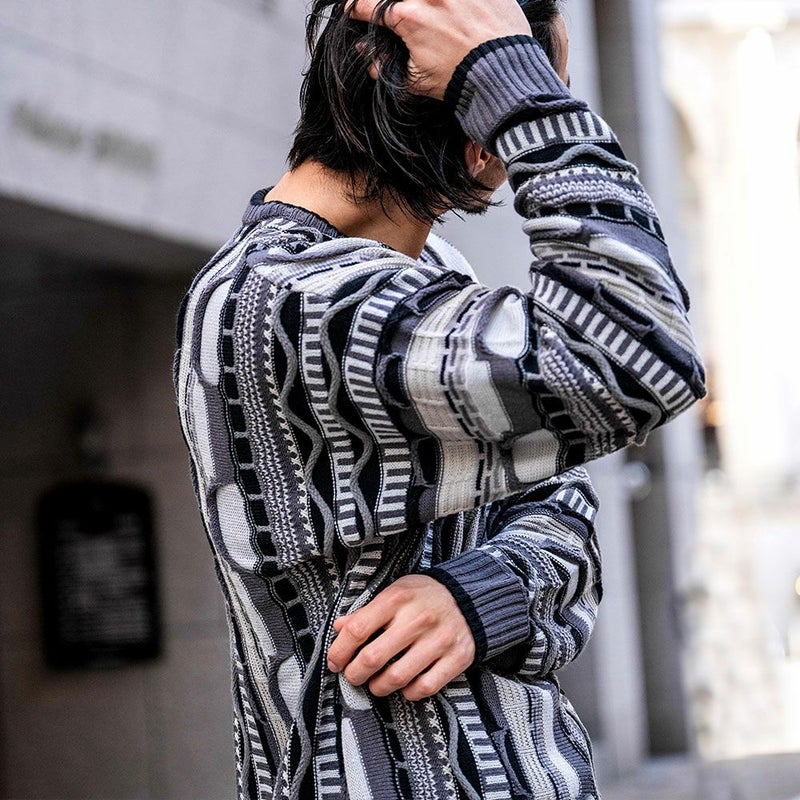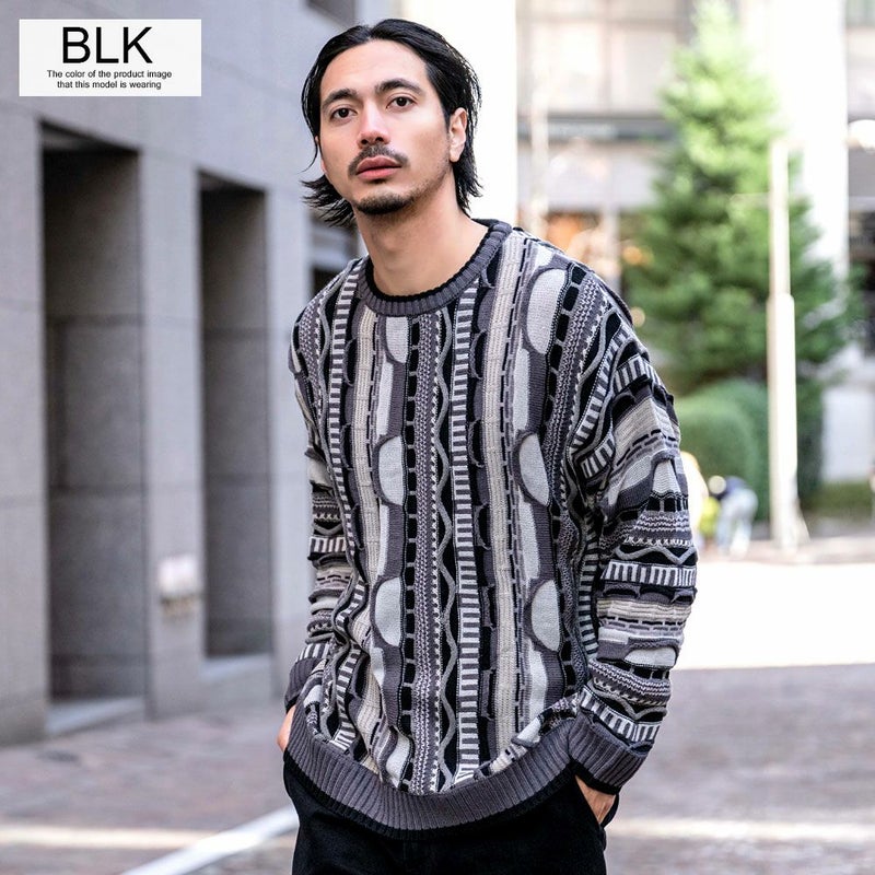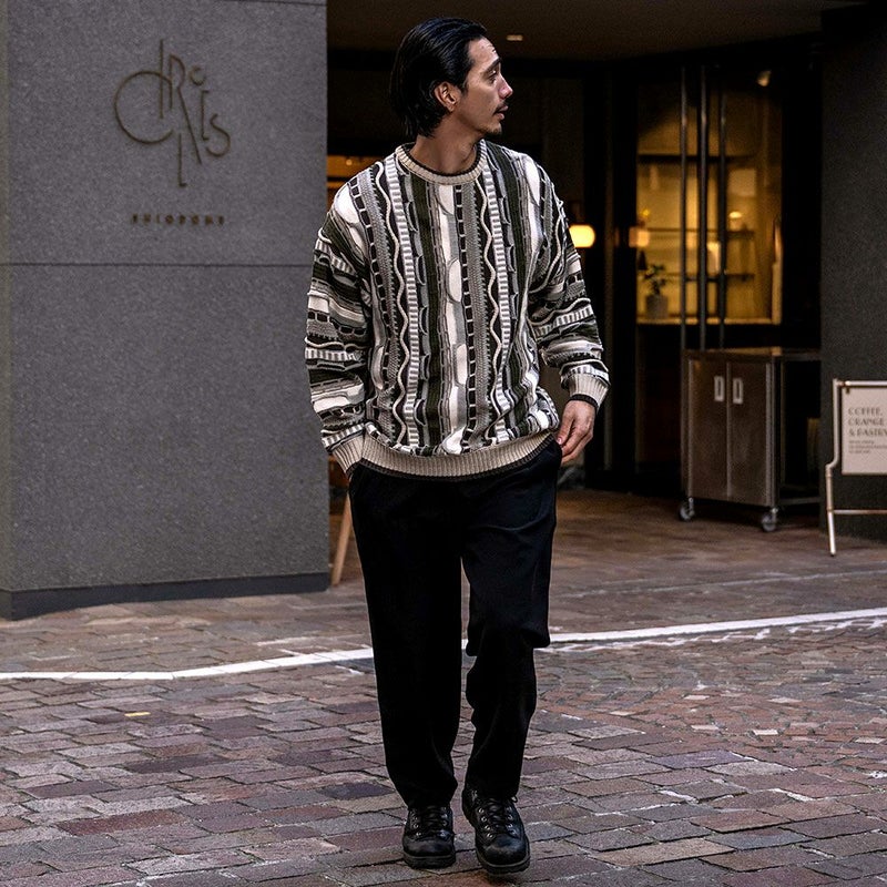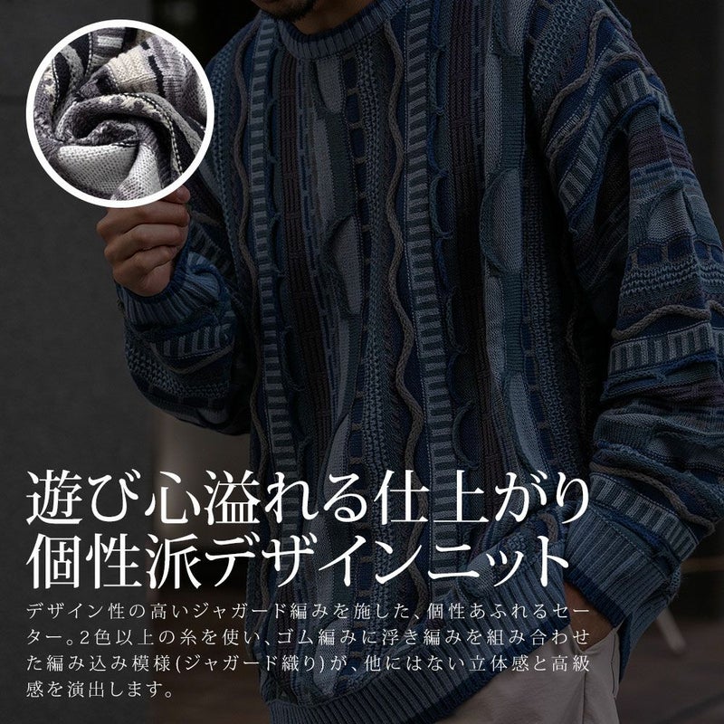 【立体感を兼ね備えたジャガード編みセーター】