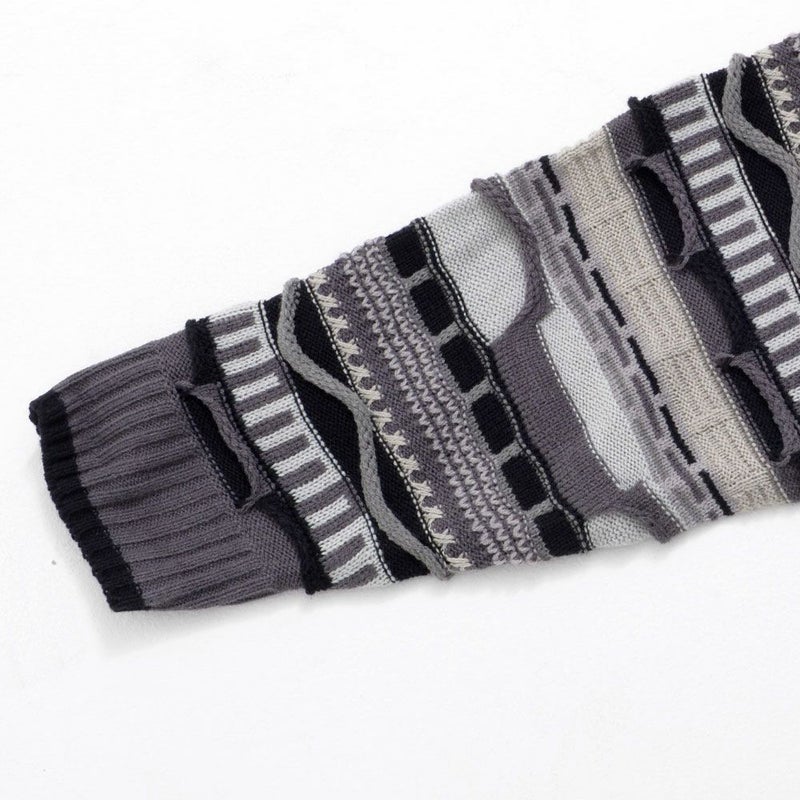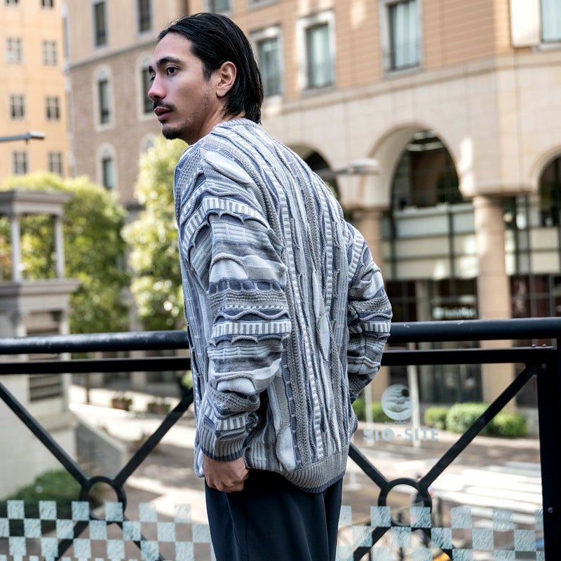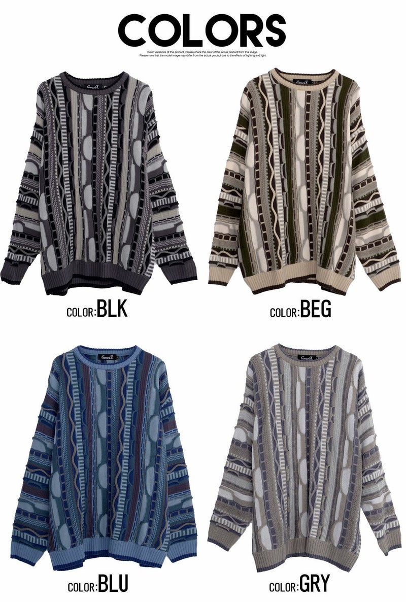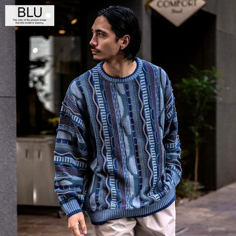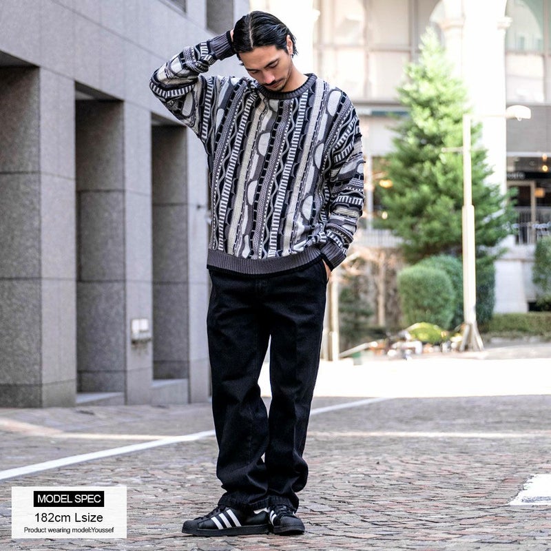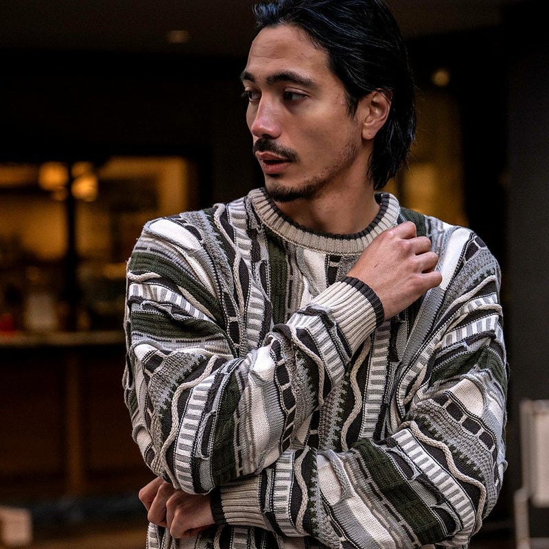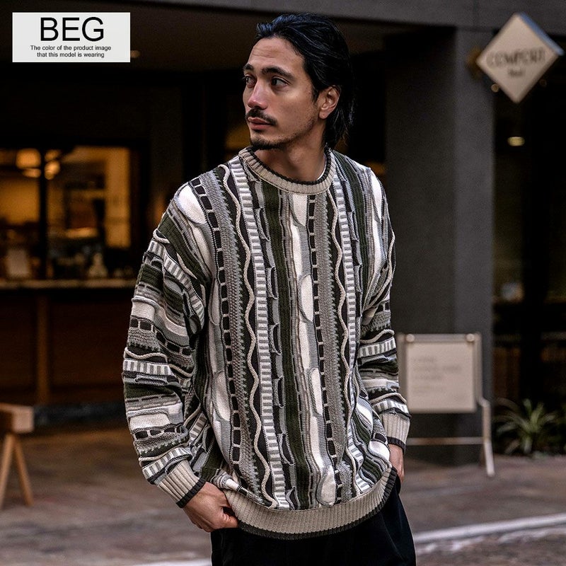 【立体感を兼ね備えたジャガード編みセーター】