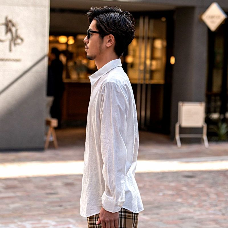 国内メーカーより生地を厳選し、縫製・生産のすべて「国産」にこだわった長袖シャツです。