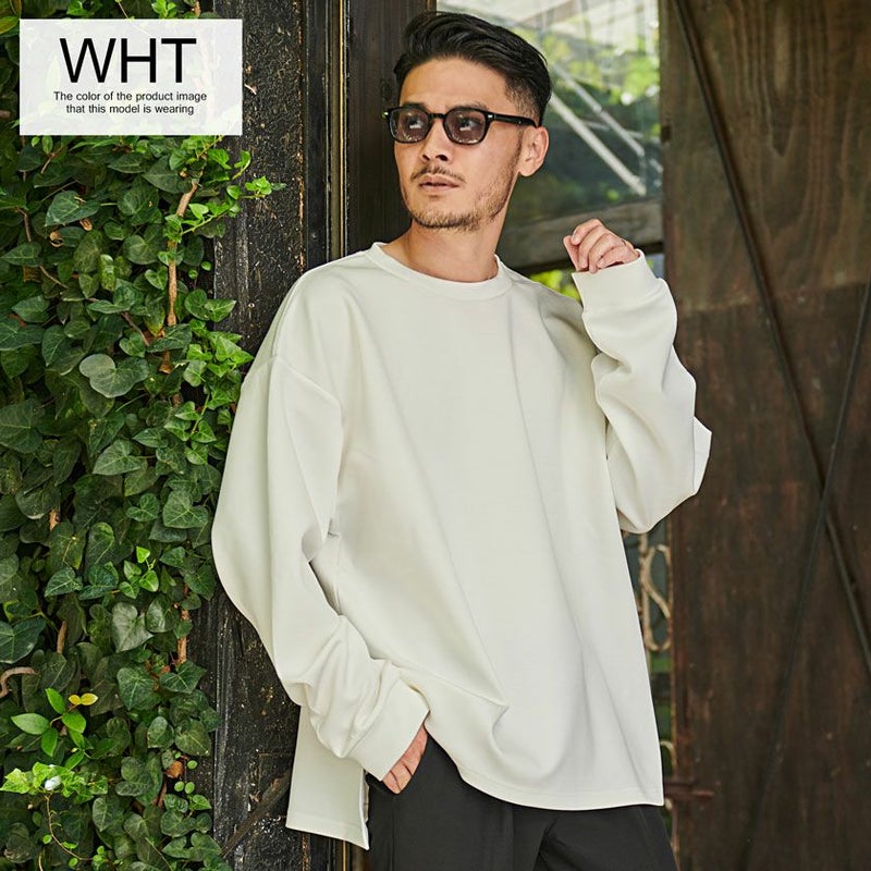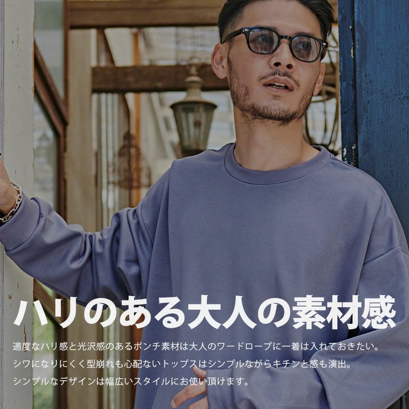 適度なハリ感と光沢感のあるポンチ素材を使用した長袖Tシャツ。