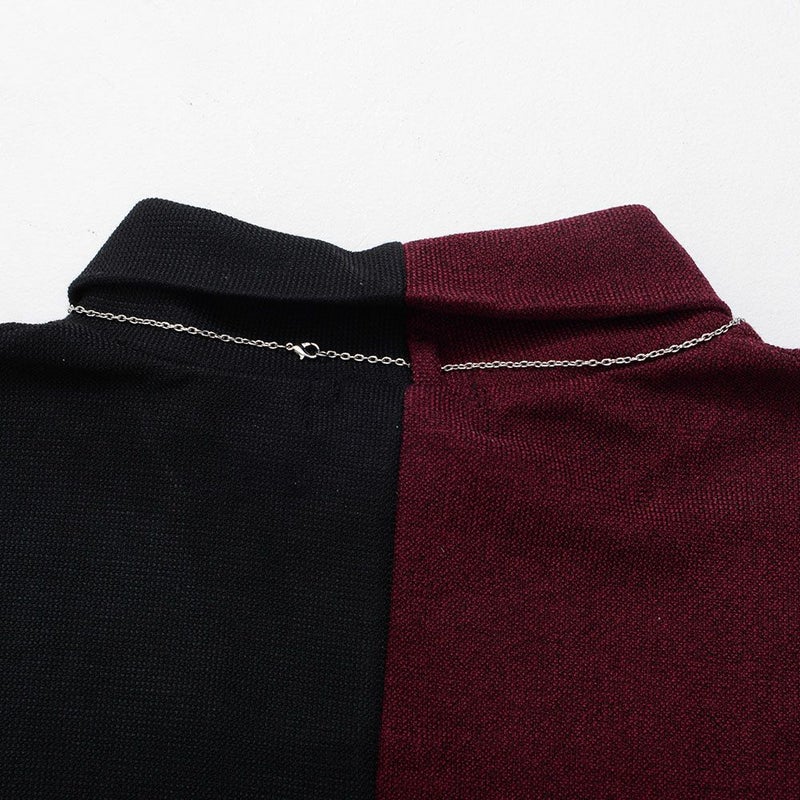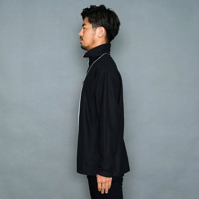 ネック部分はモードな雰囲気漂うタートルネック仕様で襟元には取り外し可能なネックレスが付属しており、首周りを一段と引き立ててくれます。