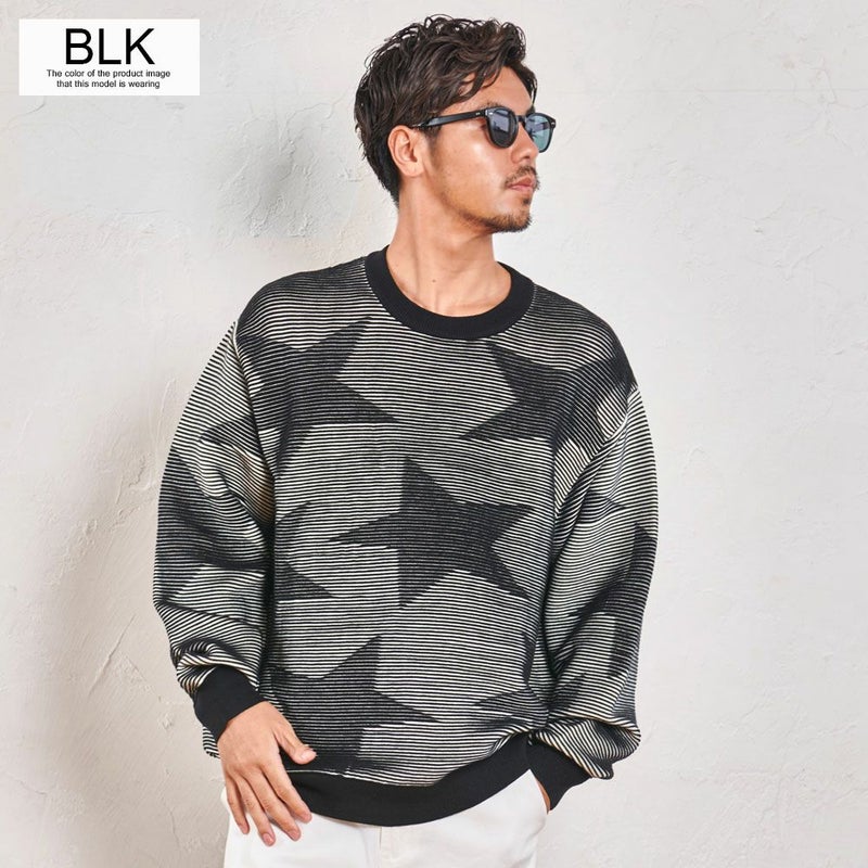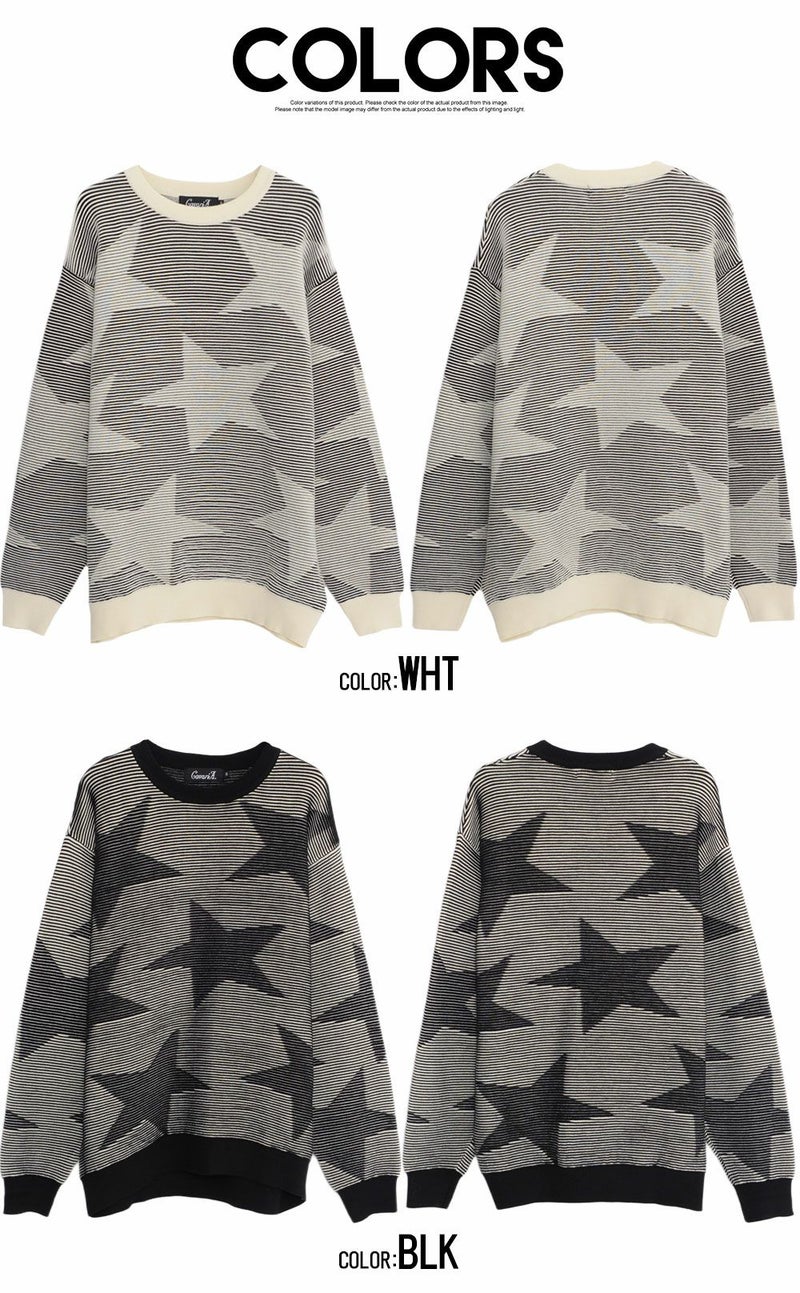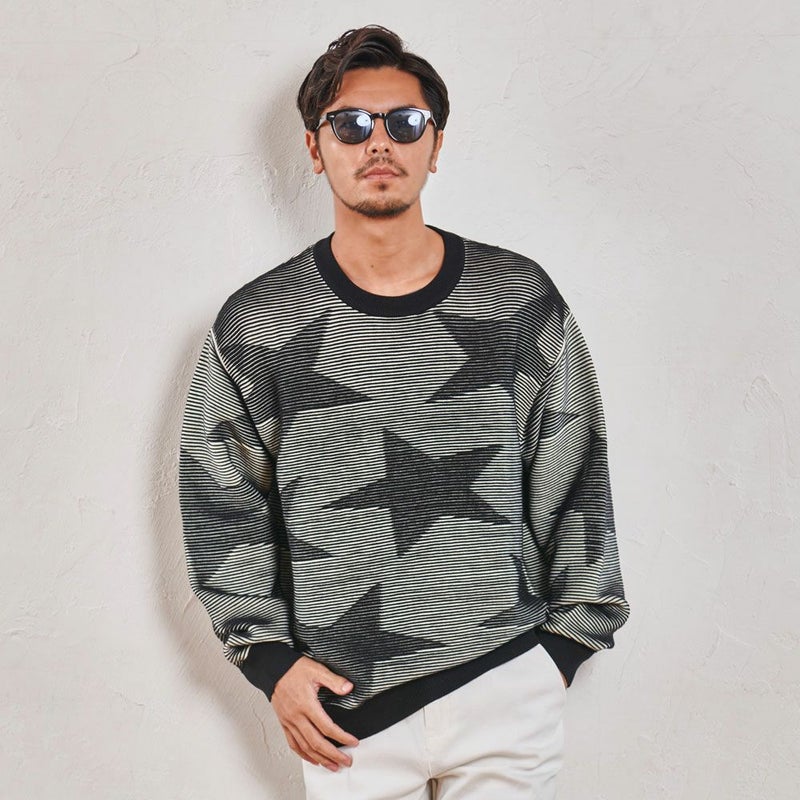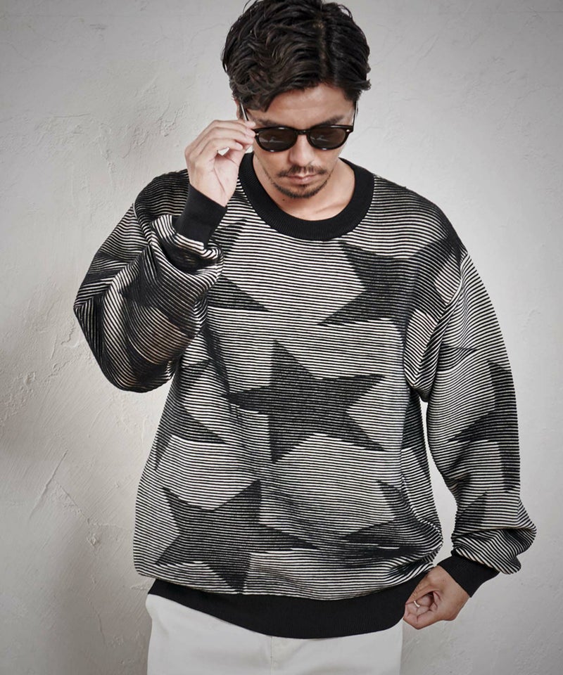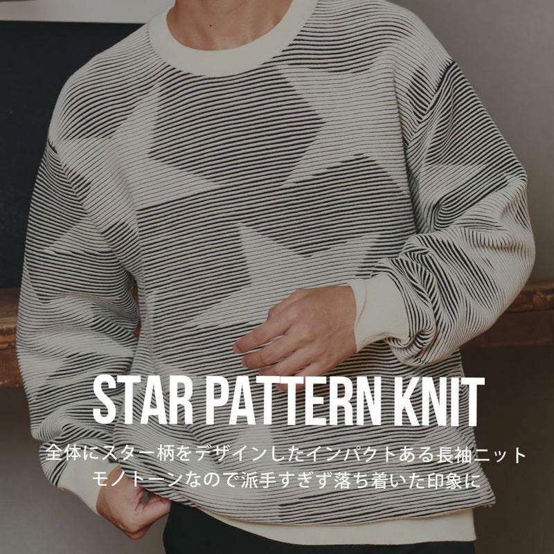 全体に大きめのスター柄をデザインしたインパクトある長袖ニット。