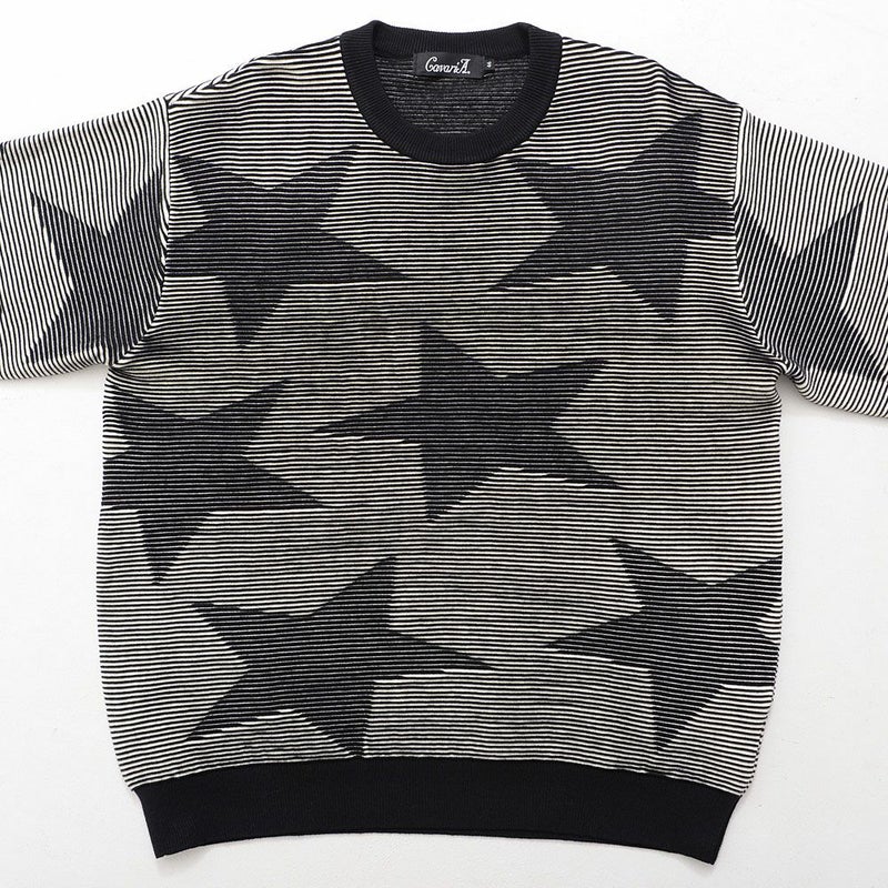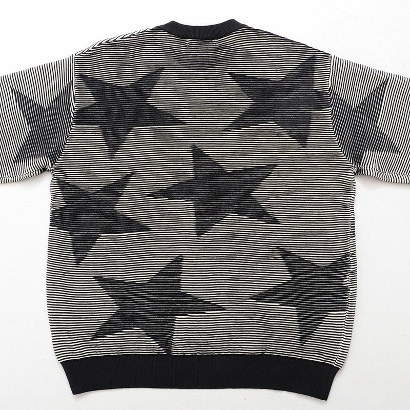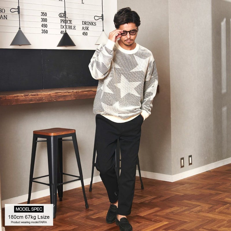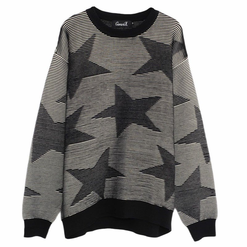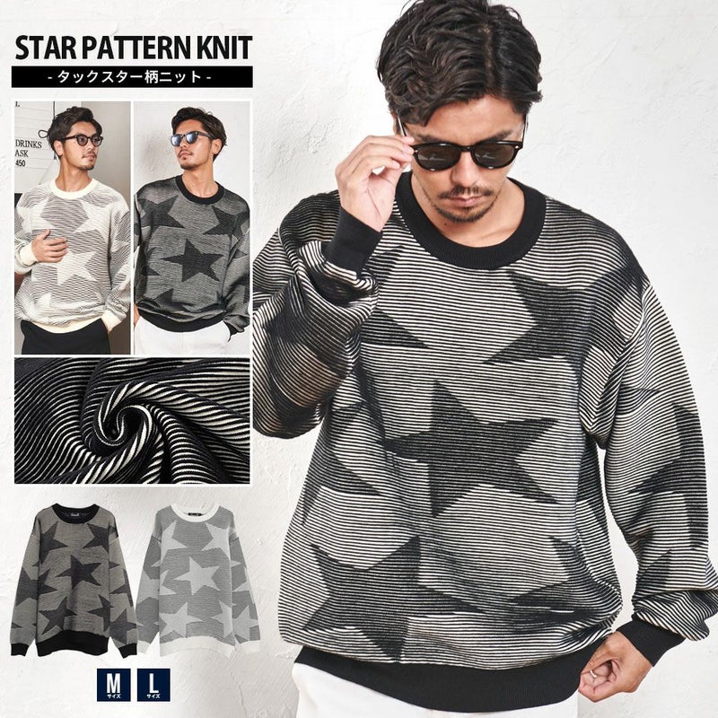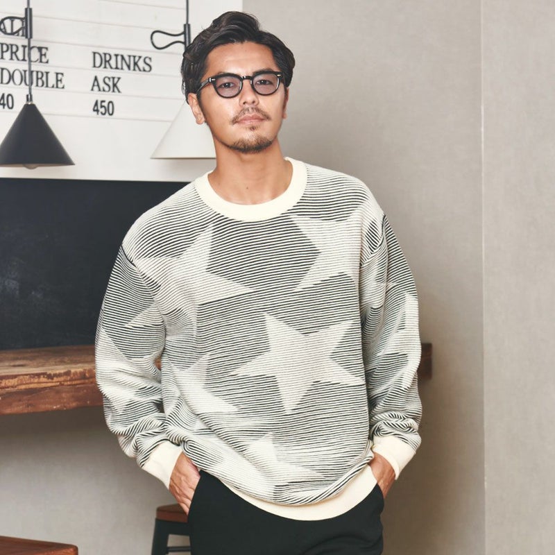 全体に大きめのスター柄をデザインしたインパクトある長袖ニット。