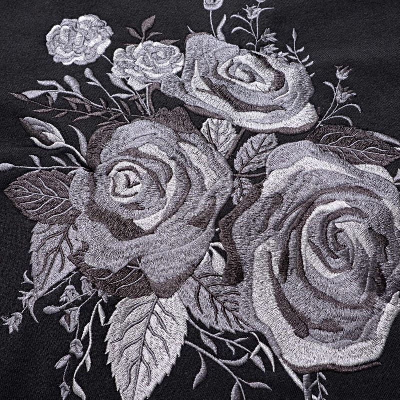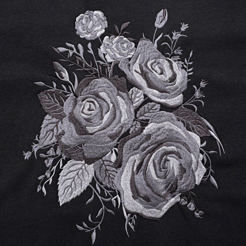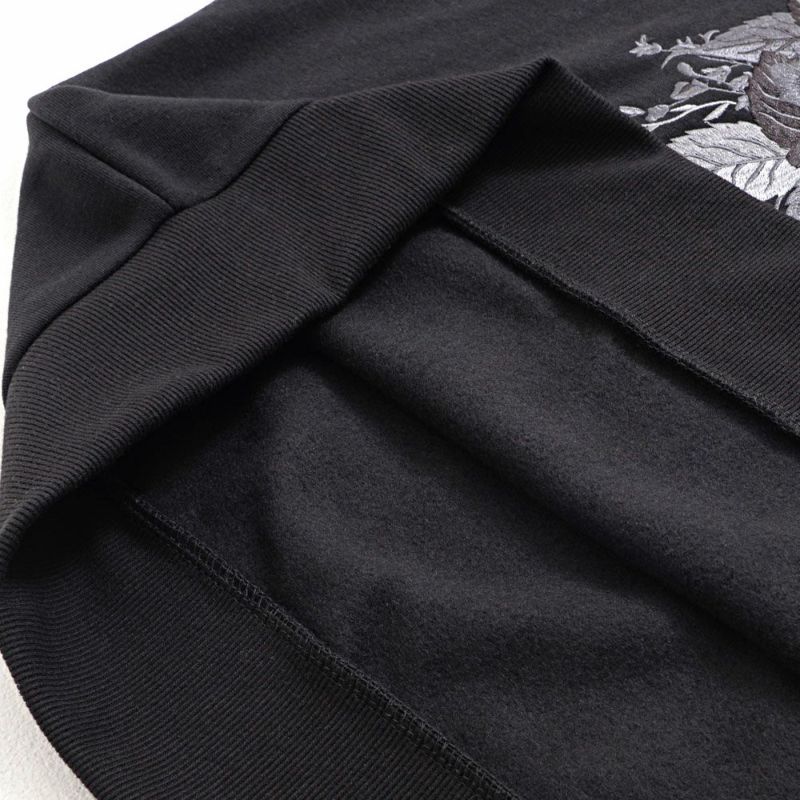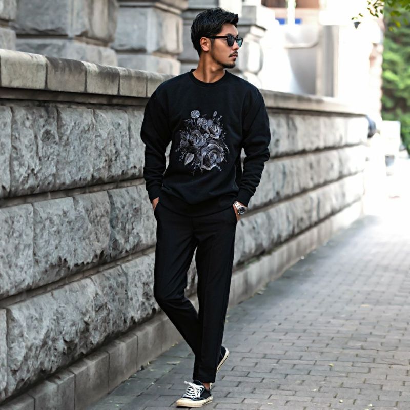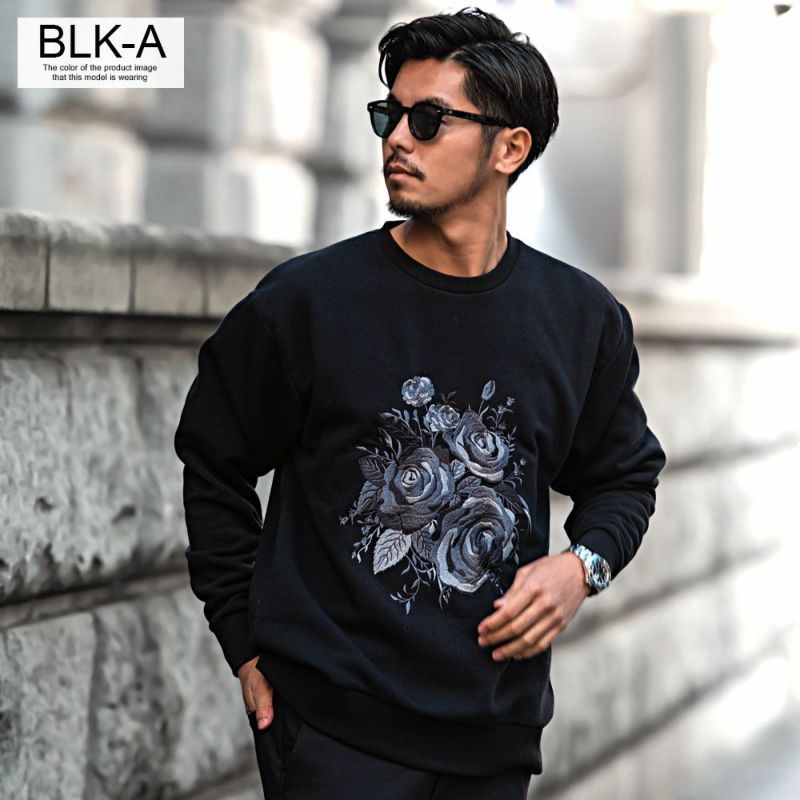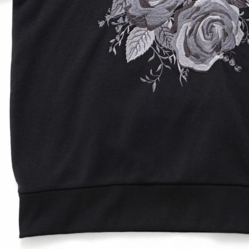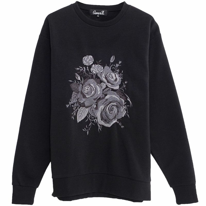 フロントに施された薔薇刺繍が目を惹き、一枚で主役になれるトレーナー。