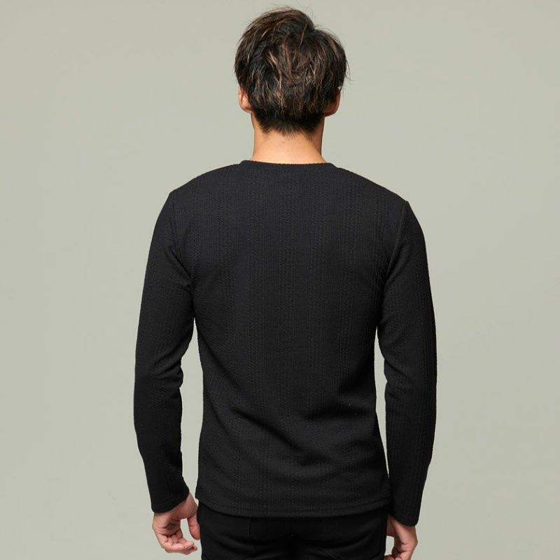 表面に凹凸のあるふくれストライプ柄の生地を使用し、ワンカラーでも存在感のあるロンT。