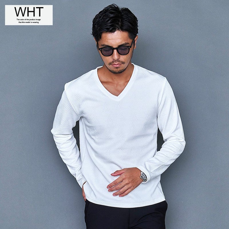 凹凸のあるジグザグ柄を表面にほどこしたジャガード生地の長袖Tシャツ。