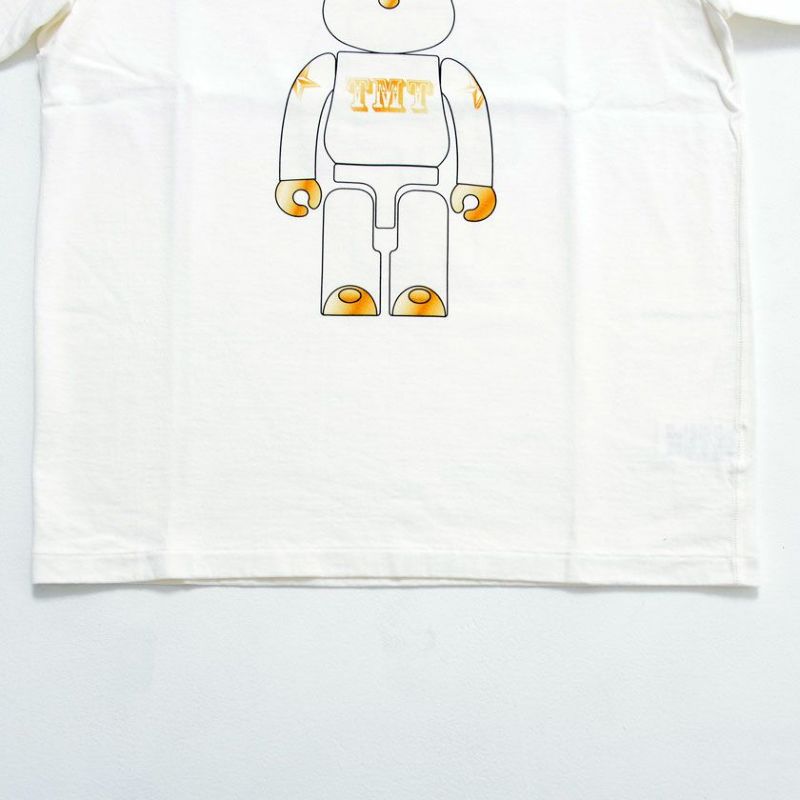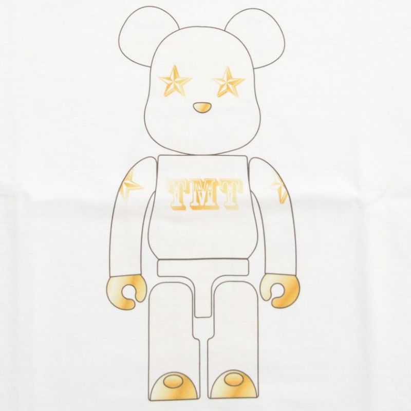 正面と背面には、リアルなベアブリックのプリントがあり、袖には、TMTのロゴの刺繍風ワッペンが付きます。