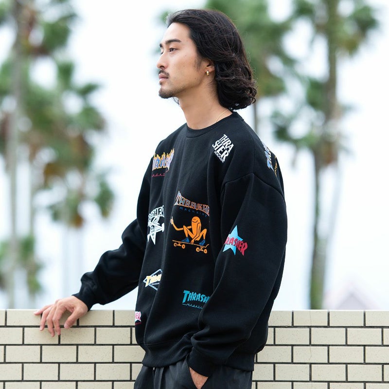 BITTER STORE(ビターストア)にTHRASHER【スラッシャー】総柄プリント&刺繍C/N長袖トレーナーが入荷しました。