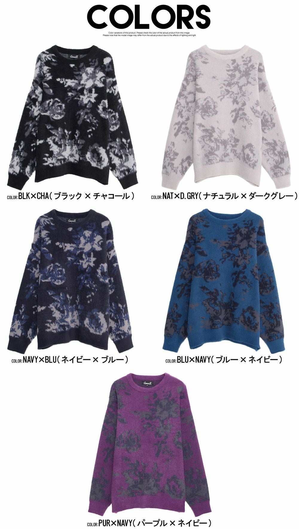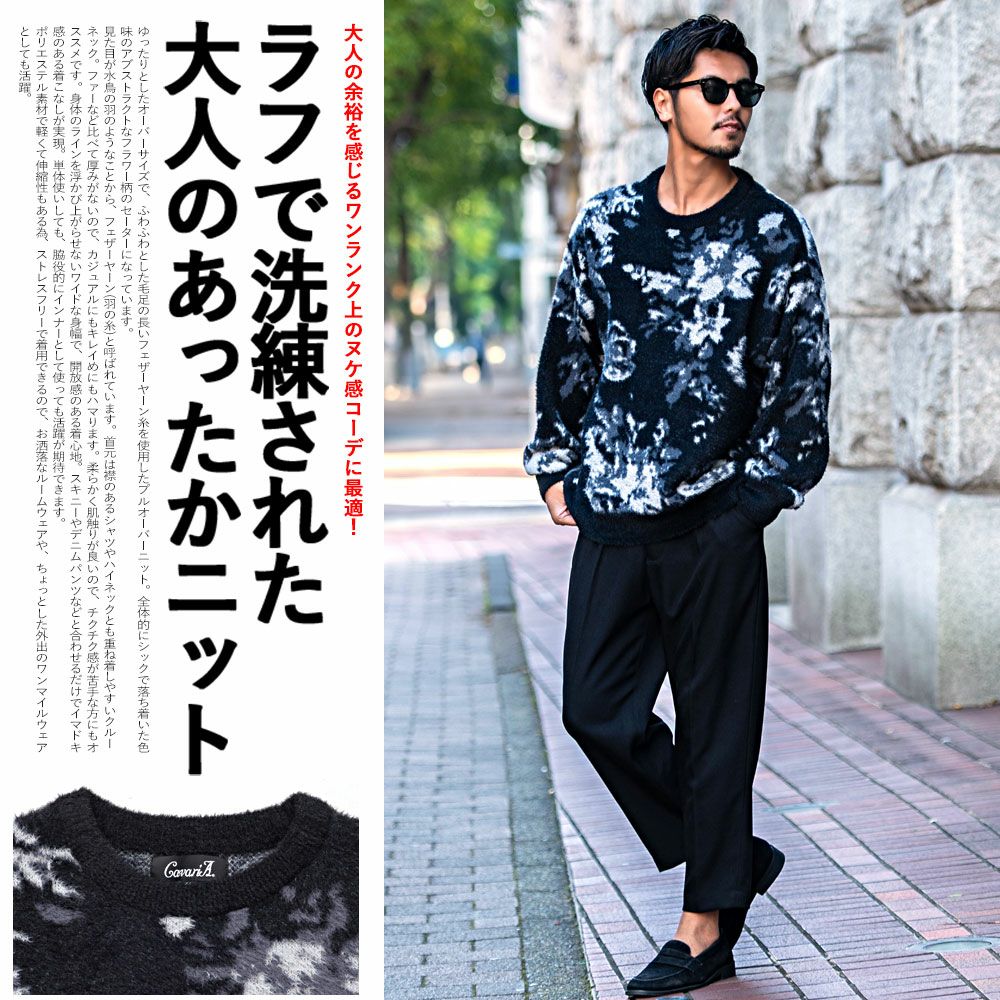 他の画像を見る ふわふわとした毛足の長いフェザーヤーン糸を使用し、柔らかく軽やかな着心地を実現。暖かみがありながらも軽く、チクチク感が少ないため、敏感肌の方にもおすすめです。 CavariA(キャバリア)フェザーヤーンフラワー柄ルーズサイズ長袖シャギーニット/全5色 販売価格 ¥ 7,590 税込 カートに入れる お気に入りに登録する