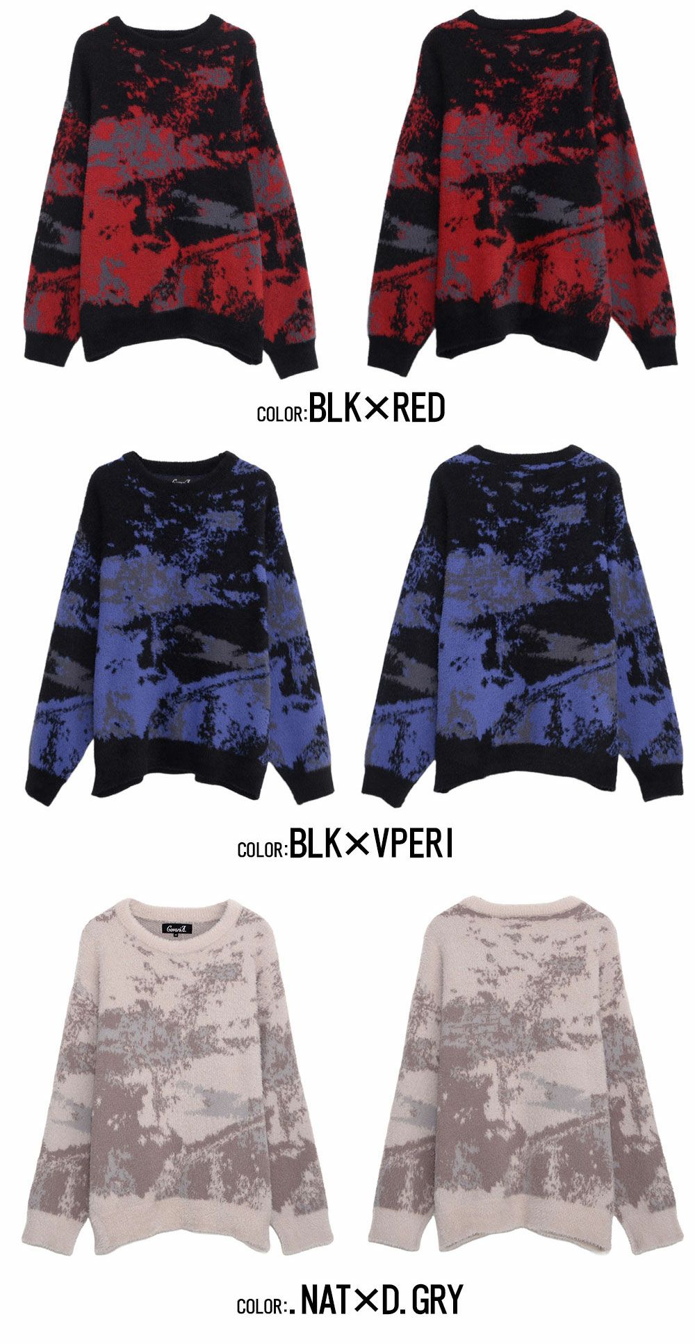 他の画像を見る ダブルジャガードのしっかりとした編地で、着心地もあたたかく、デザインもきれいなプルオーバーニット。 CavariA(キャバリア)カモフラ柄オーバーサイズクルー長袖ニット/全3色 販売価格 ¥ 6,490 税込 カートに入れる お気に入りに登録する