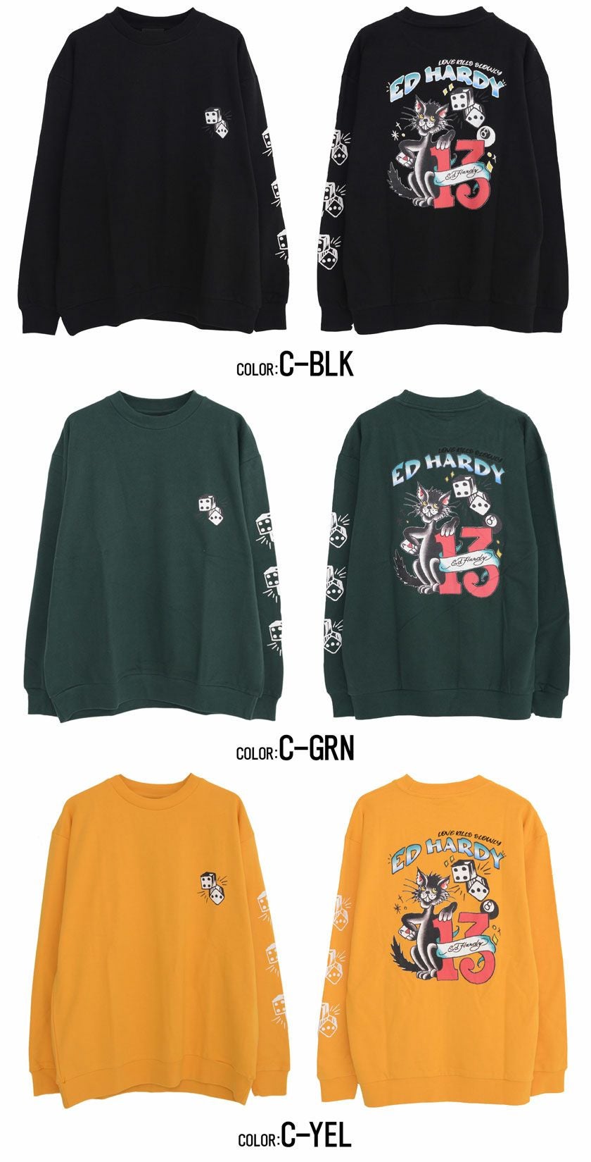他の画像を見る SALE リラックスしたい日にぴったりのトレーナー・スウェット。心地よさとスタイルを両立。 【SALE/セール】ED HARDY(エドハーディー)プリント長袖スウェットトレーナー3タイプ/全9色 通常価格 ¥ 6,490 のところ 販売価格 ¥ 4,290 税込 カートに入れる お気に入りに登録する