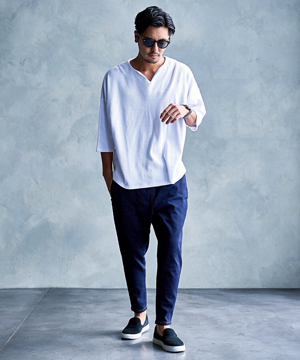 他の画像を見る V字カットで顔周りがスッキリとした印象&爽やかな着こなしに仕上がります。凹凸のある編み目の生地は通気性と速乾性に優れているのでこれからの時期に最適。 CavariA(キャバリア)キーネック半袖Tシャツ/全4色 販売価格 ¥ 5,390 税込 カートに入れる お気に入りに登録する