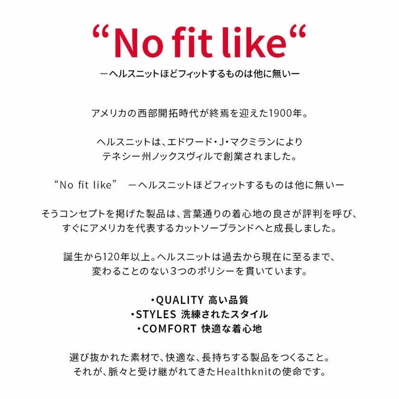 “No fit like” -ヘルスニットほどフィットするものは他に無いー そうコンセプトを掲げた製品は、言葉通りの着心地の良さが評判を呼び、 すぐにアメリカを代表するカットソーブランドへと成長しました。