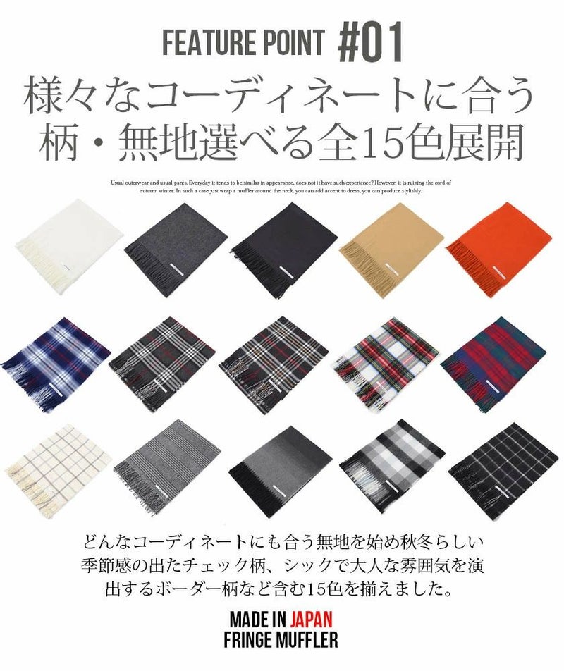 CavariA【キャバリア】からマフラーが入荷しました。 生地から縫製に至るまですべて国内生産で仕上げた上質なマフラー。 無地、チェック柄、ボーダー柄などカラーバリエーション豊富な15色をご用意。 様々なコーディネートに合うほっこり暖かいマフラーを是非。 プレゼントとして贈っても喜ばれるアイテムです。 ※モデル画像は照明などの影響により実際の商品と異なる場合がございます。